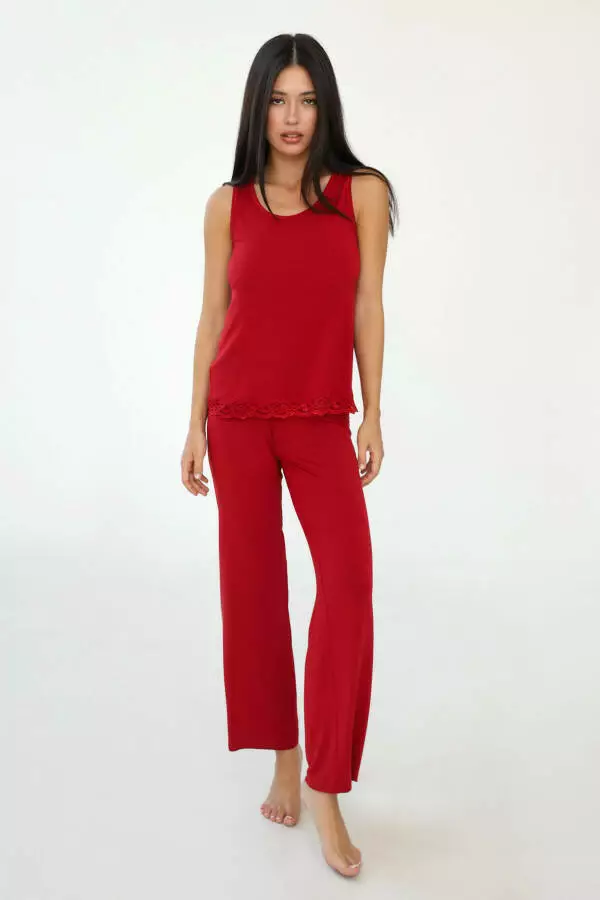 Бордовий колір додає штанам вишуканості та глибини, надаючи вашому образу елегантного і романтичного вигляду. Цей насичений відтінок підкреслює вашу індивідуальність та додає тепла й затишку, роблячи ці штани стильним акцентом домашнього гардеробу. Бордовий колір завжди асоціюється з розкішшю та жіночністю, тому вони підходять як для тихих вечорів вдома, так і для моментів відпочинку, коли ви хочете відчувати себе доглянутою та привабливою.