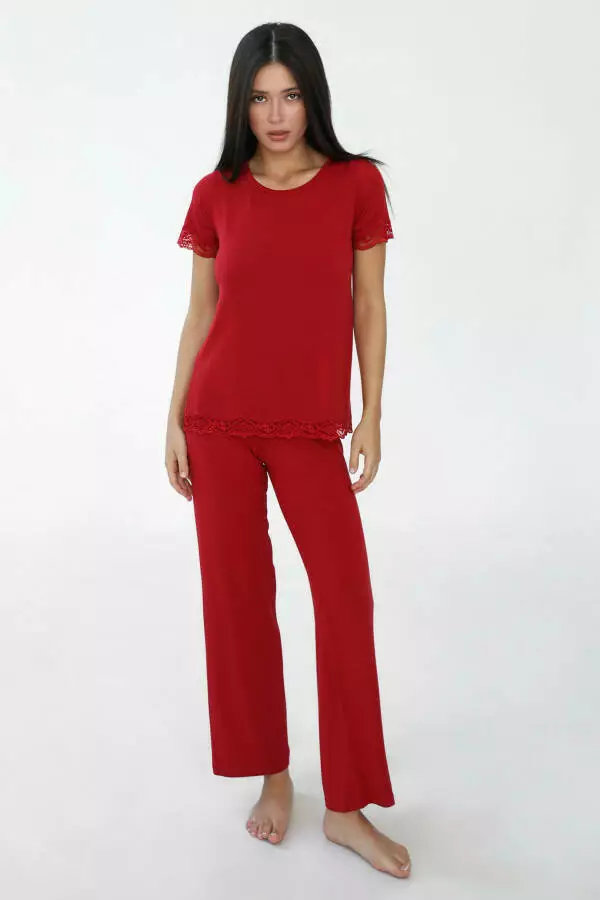 Штани легко комбінуються з іншими елементами домашнього гардеробу. Вони чудово поєднуються з піжамними топами, легкими футболками або кофтами, що дозволяє створювати стильні комплекти для дому. Завдяки своєму стриманому, але елегантному дизайну, штани можуть стати базовим елементом гардеробу для сну, який виглядає гармонійно та привабливо. Бордовий колір додає образу завершеності та дозволяє відчувати себе доглянутою навіть у домашніх умовах.
