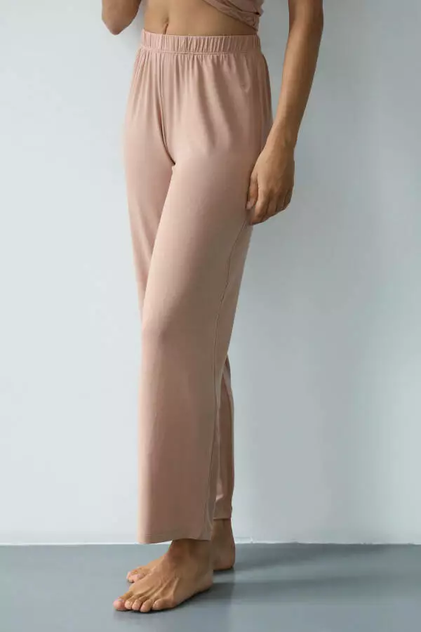 Бежевий колір – це класика, яка підходить для будь-якого стилю. Він додає образу спокою, легкості та елегантності, роблячи штани ідеальним вибором для тих, хто цінує витонченість навіть у домашньому гардеробі. Бежевий – універсальний відтінок, який підходить для будь-якого типу шкіри, додаючи образу природності та гармонії. Цей колір дарує відчуття спокою та затишку, що робить його особливо доречним для домашнього одягу, коли хочеться розслабитися та відпочити.