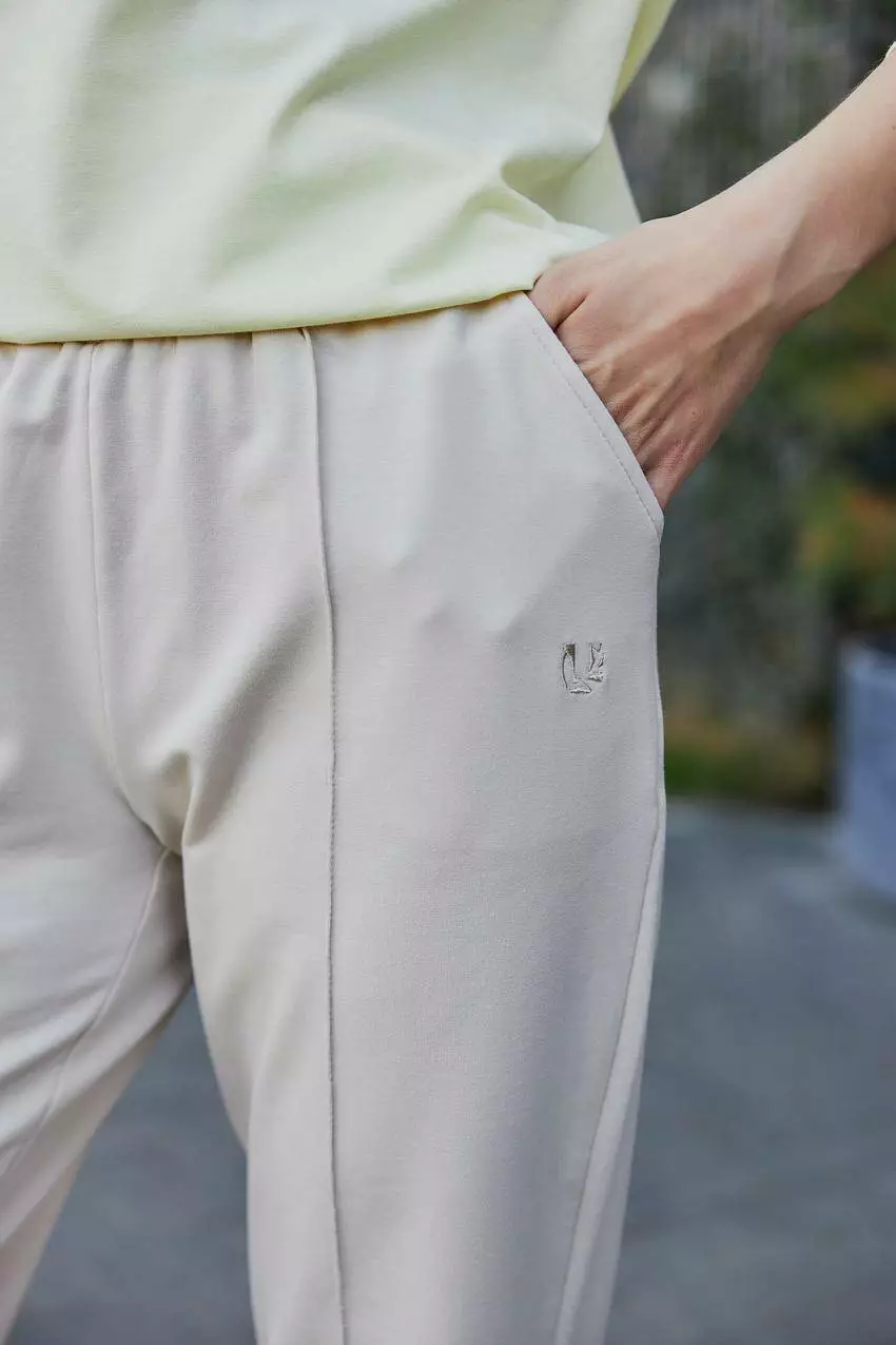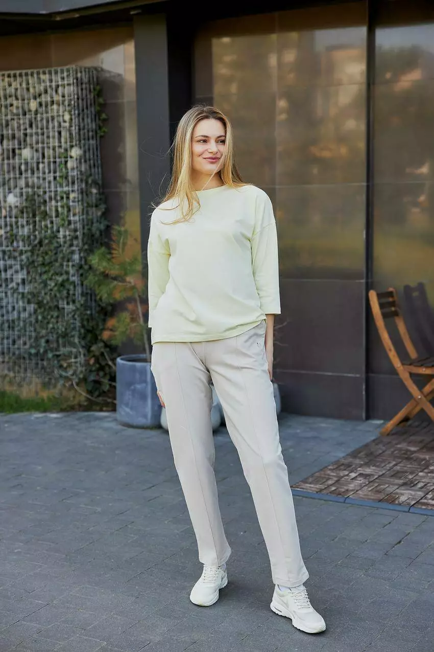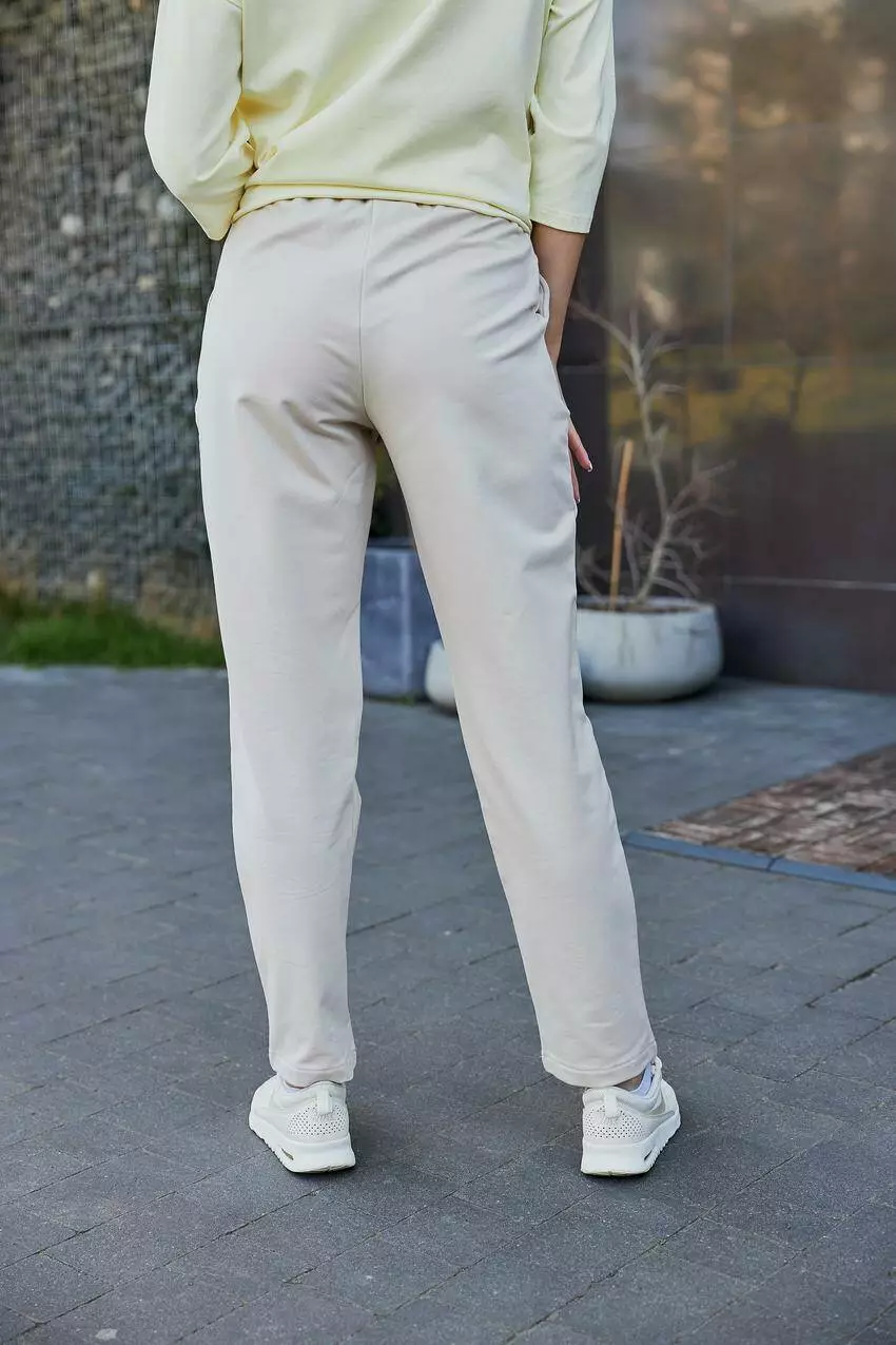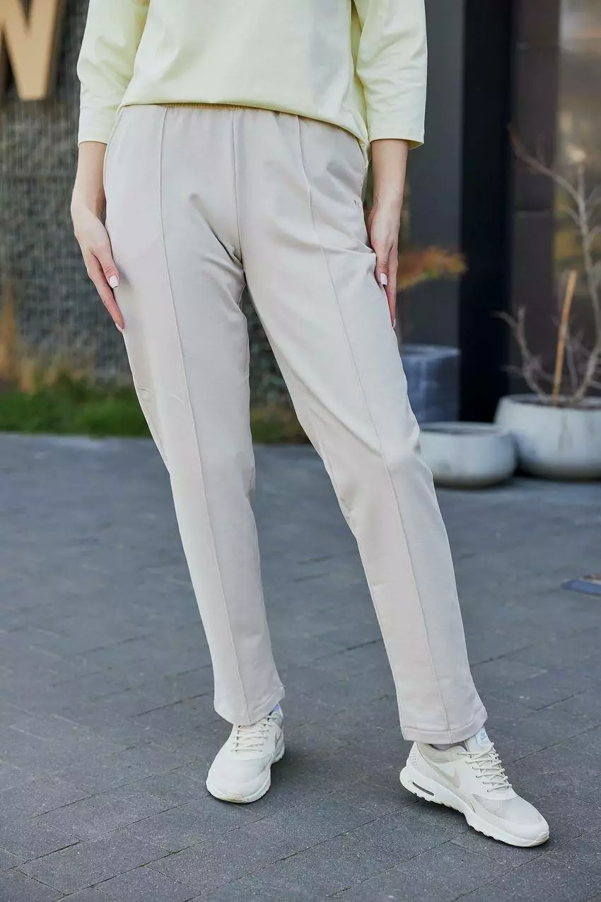 Жіночі штани з двонитки з кишенями та відстрочкою — поєднання