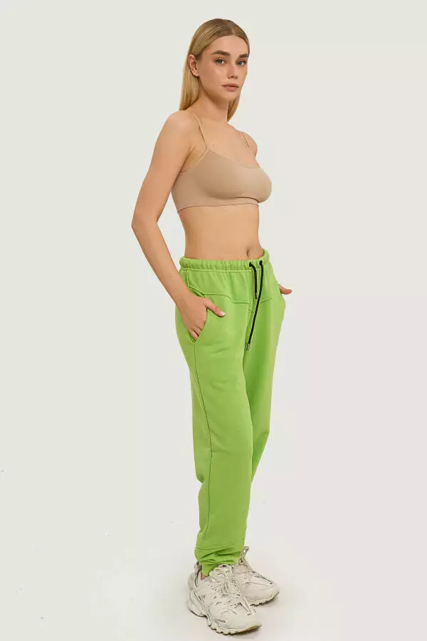 Жіночі спортивні штани з кокеткою у яскравому салатовому кольорі від German Volf – це стильний і зручний елемент гардеробу для тих, хто цінує комфорт та індивідуальність у повсякденних образах.