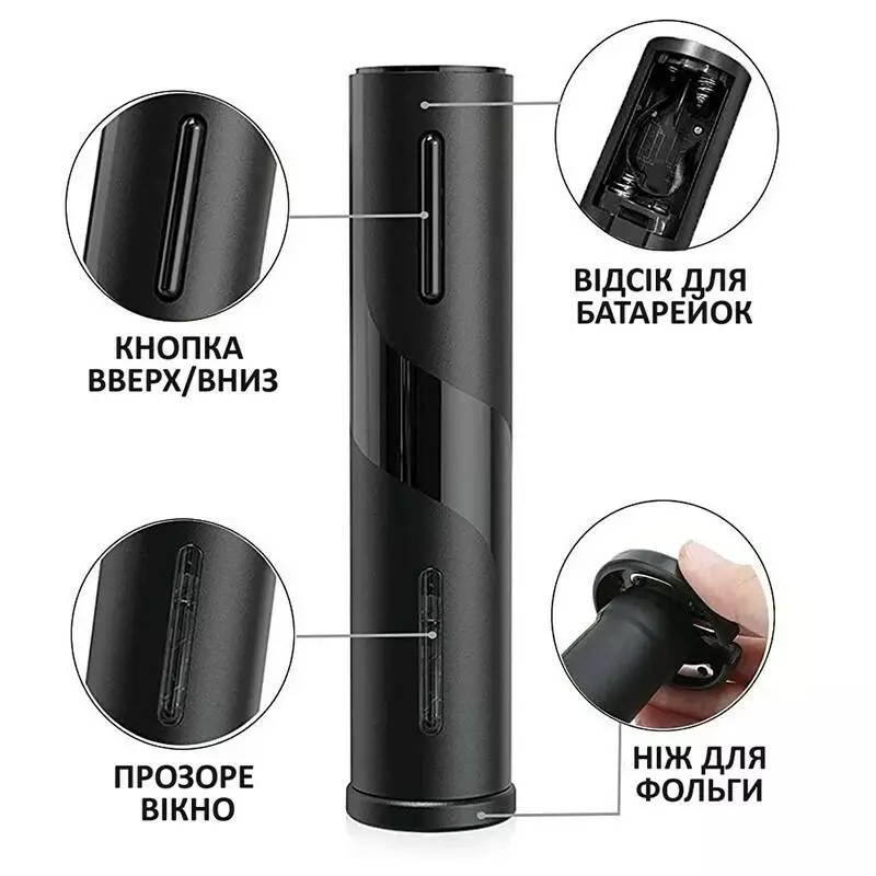 для быстрого и лёгкого открывания винных бутылок. Работает от 4