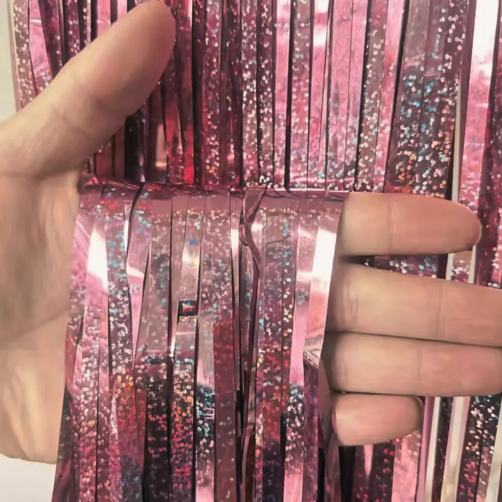 Фольгована штора-дощик в рожевому кольорі — ідеальний варіант для