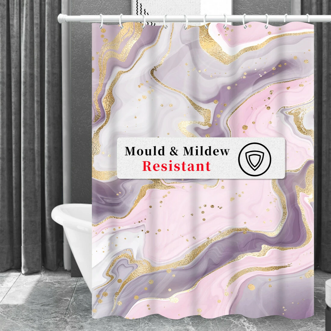 Завдяки водовідштовхувальному матеріалу вода стікає і штора повністю висихає за короткий час. Стійка до плісняви, водонепроникна, антибактеріальна та швидкосохнуча.