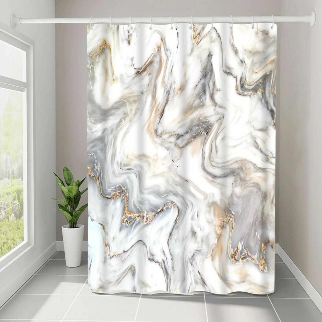 Шторка виготовлена з водовідштовхувального 100% поліестеру, завдяки