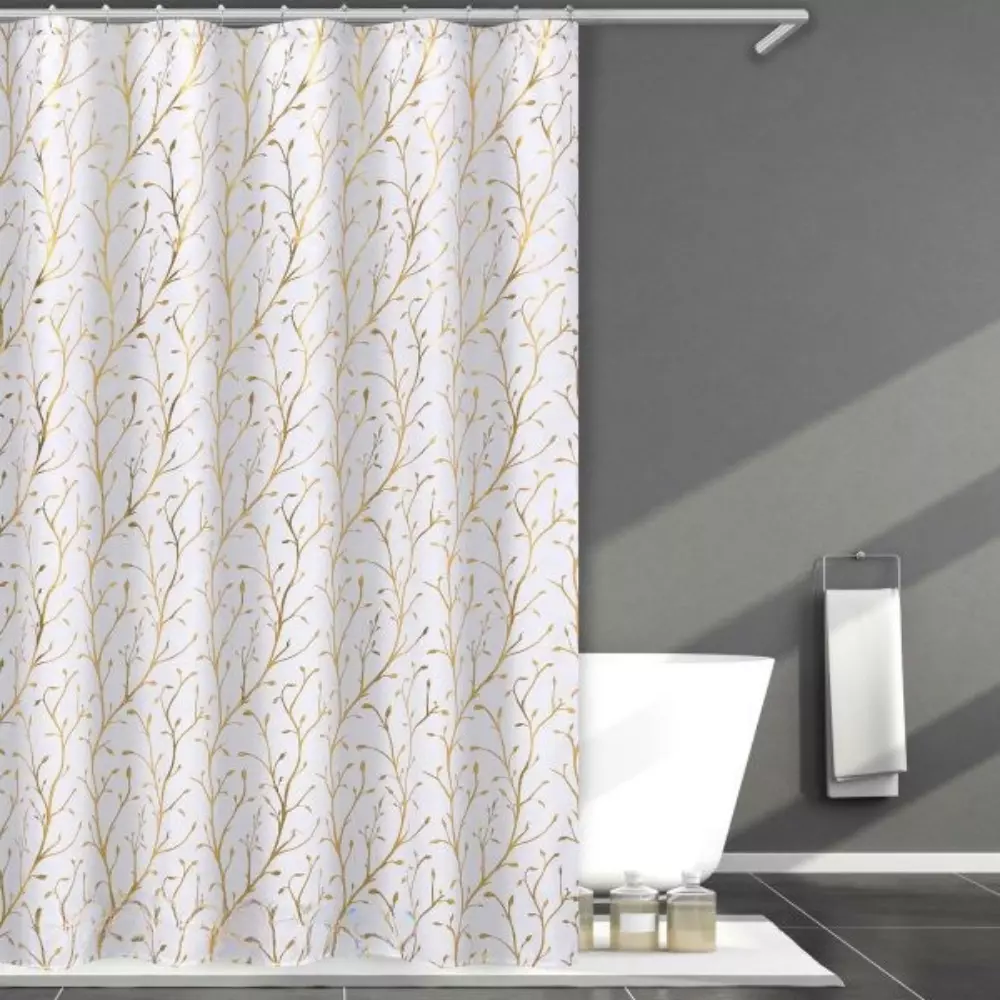 Элегантный набор для ванной: штора с золотистым веточным узором