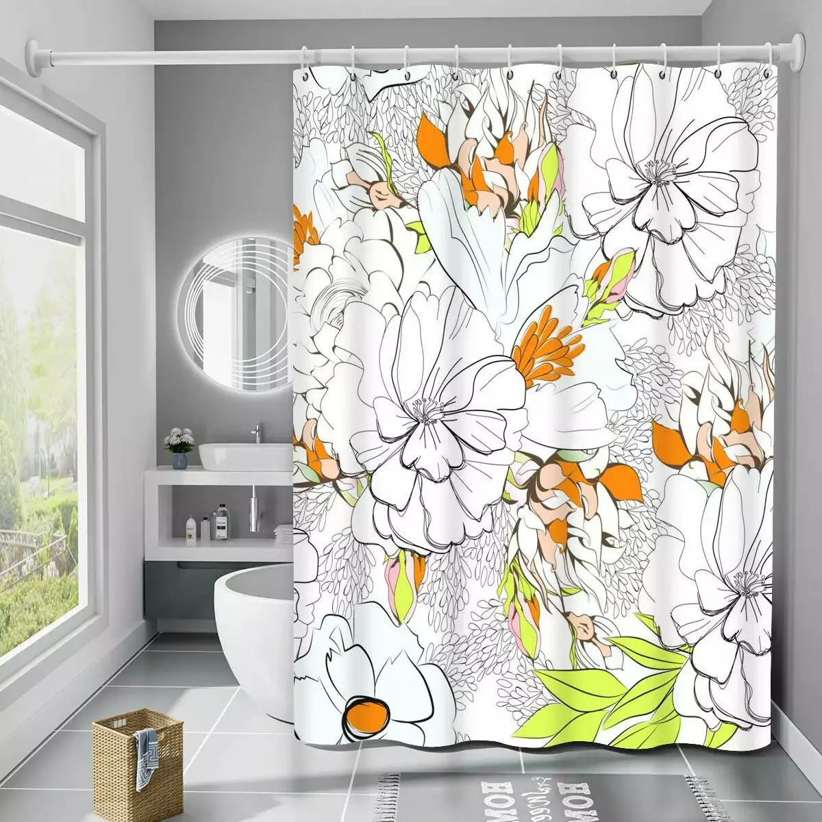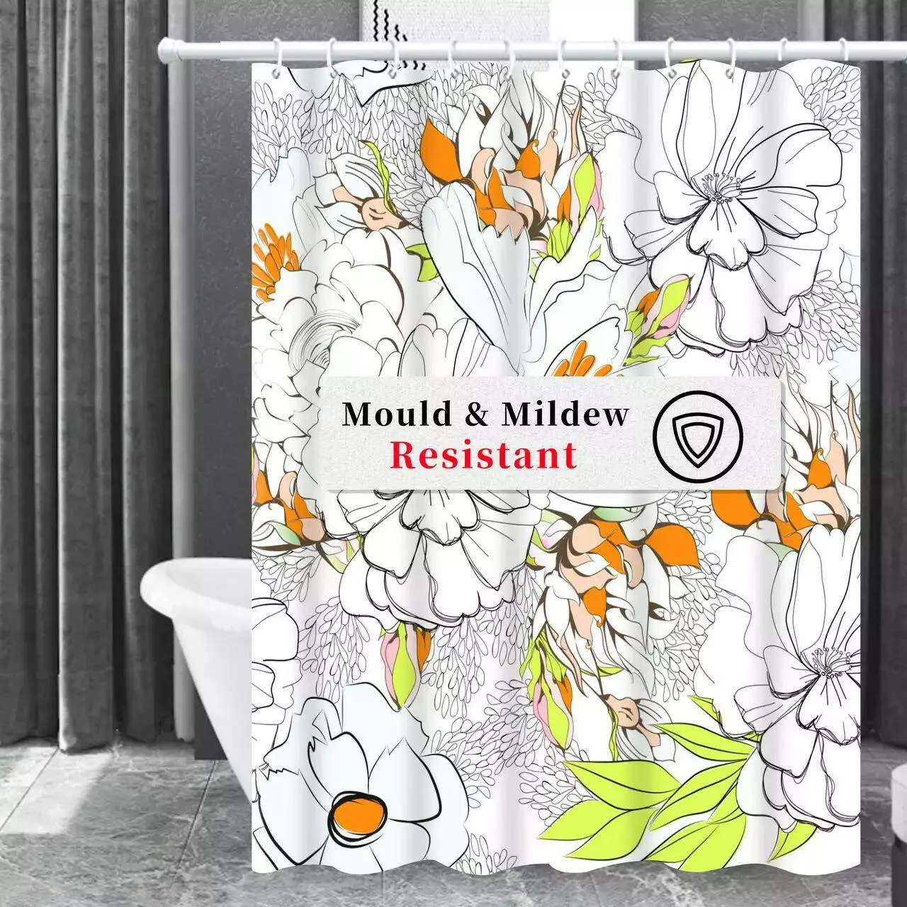 Шторка изготовлена из водоотталкивающего 100% полиэстера, благодаря