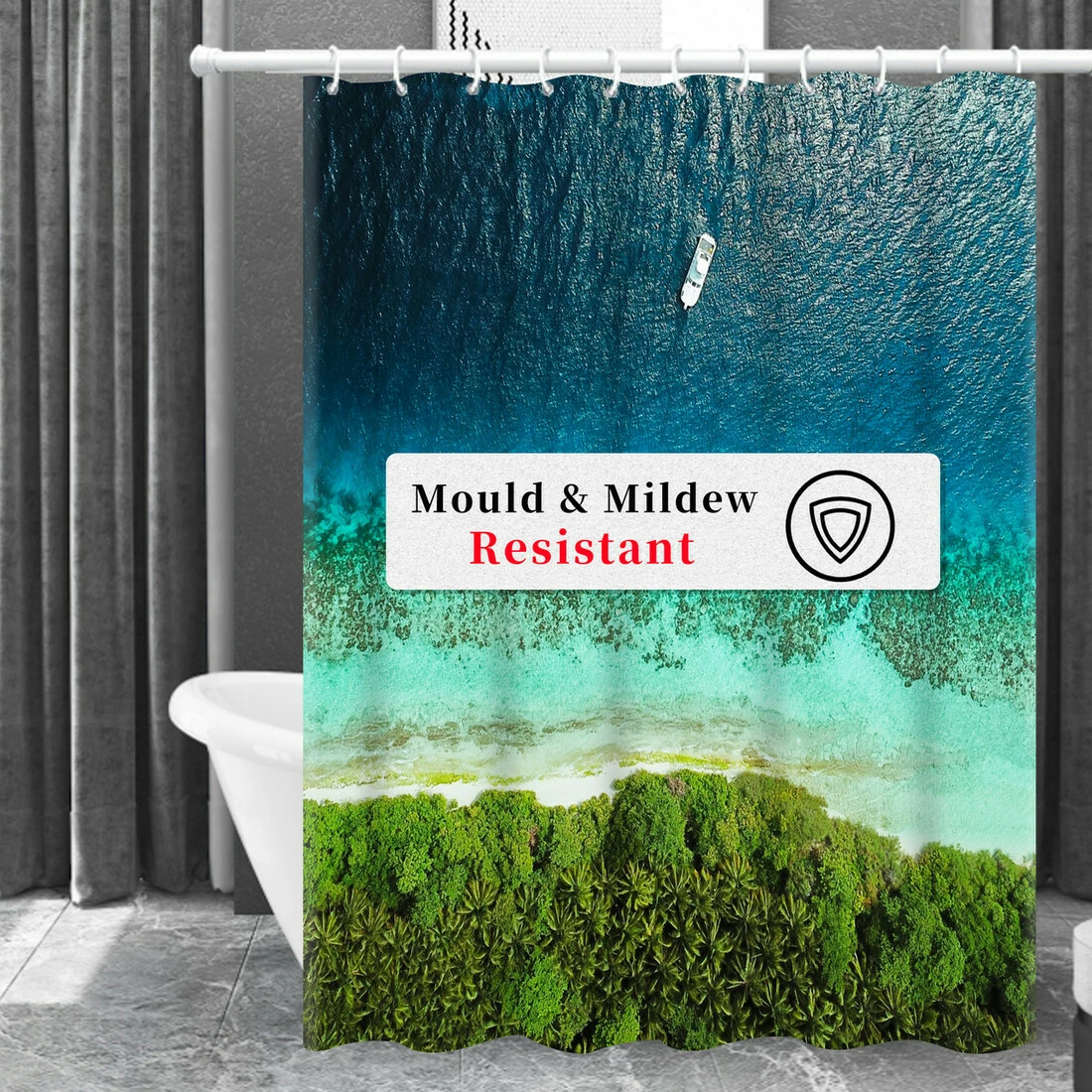 Шторка изготовлена из водоотталкивающего 100% полиэстера, благодаря