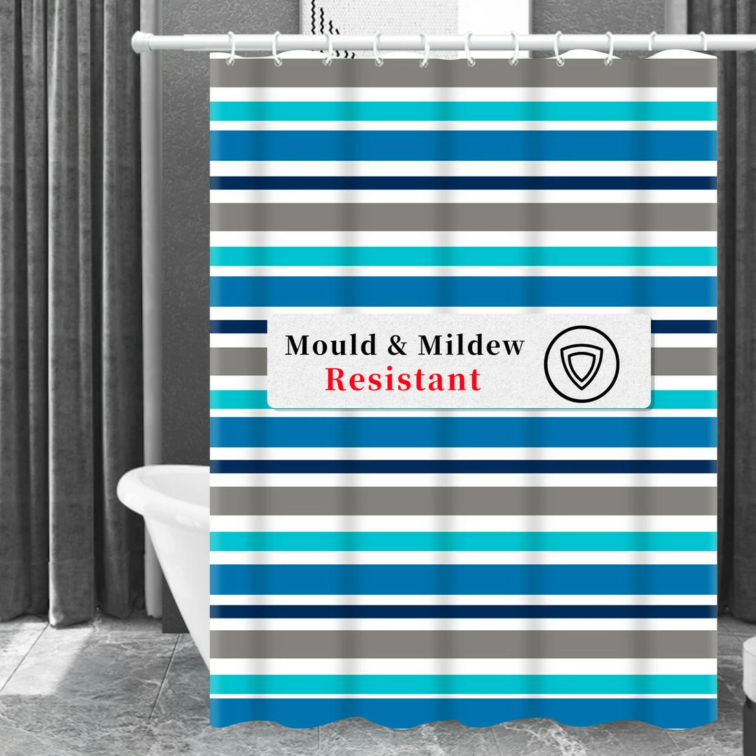 Шторка изготовлена из водоотталкивающего 100% полиэстера, благодаря