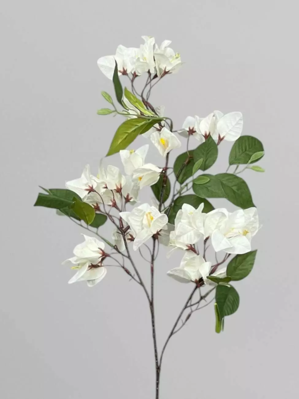 Штучна бугенвілія, декоративна гілка з квітами, білий, 77 см