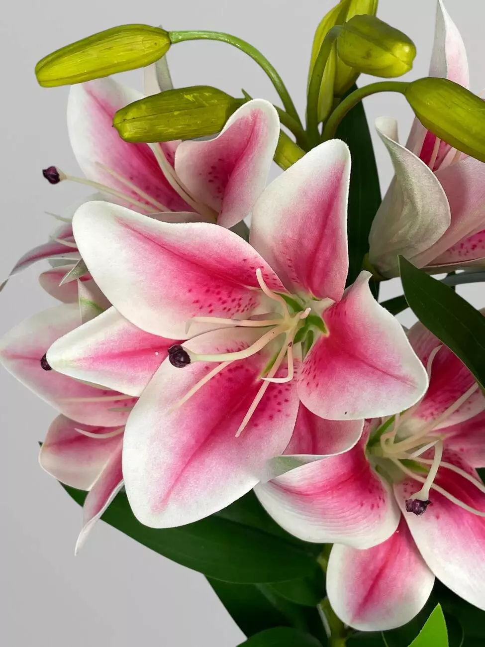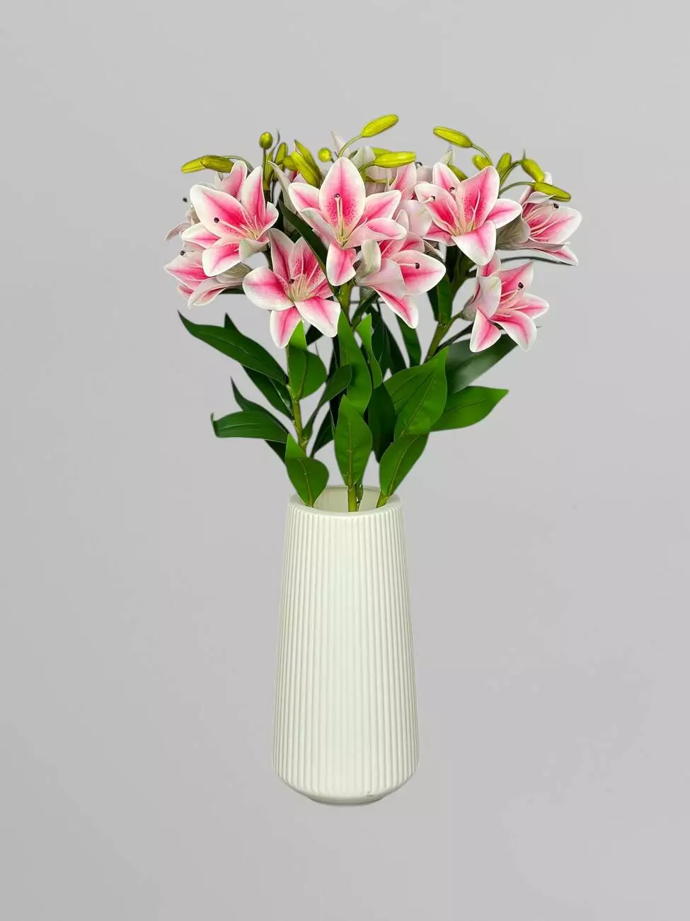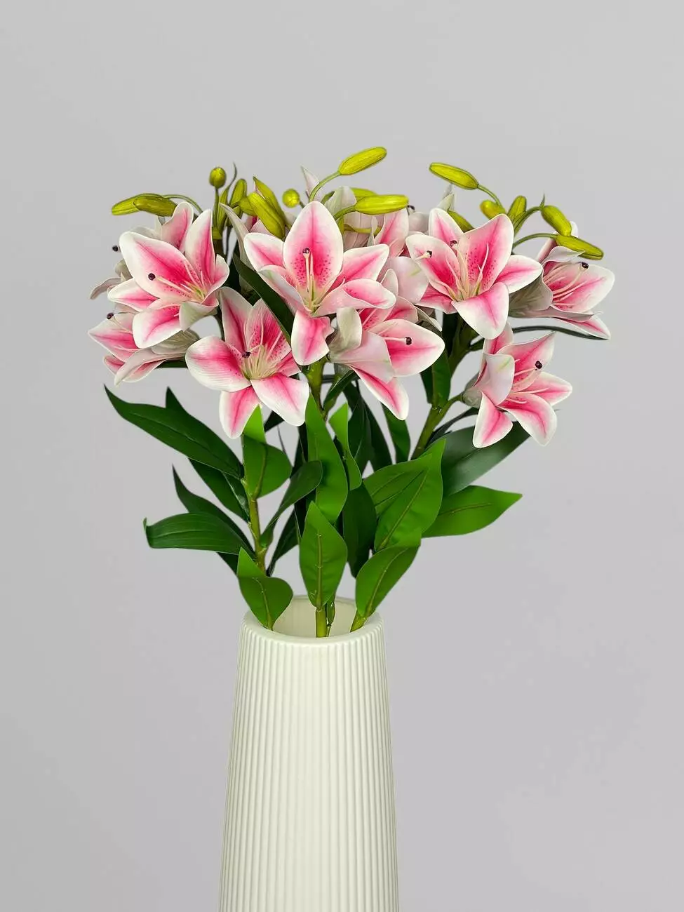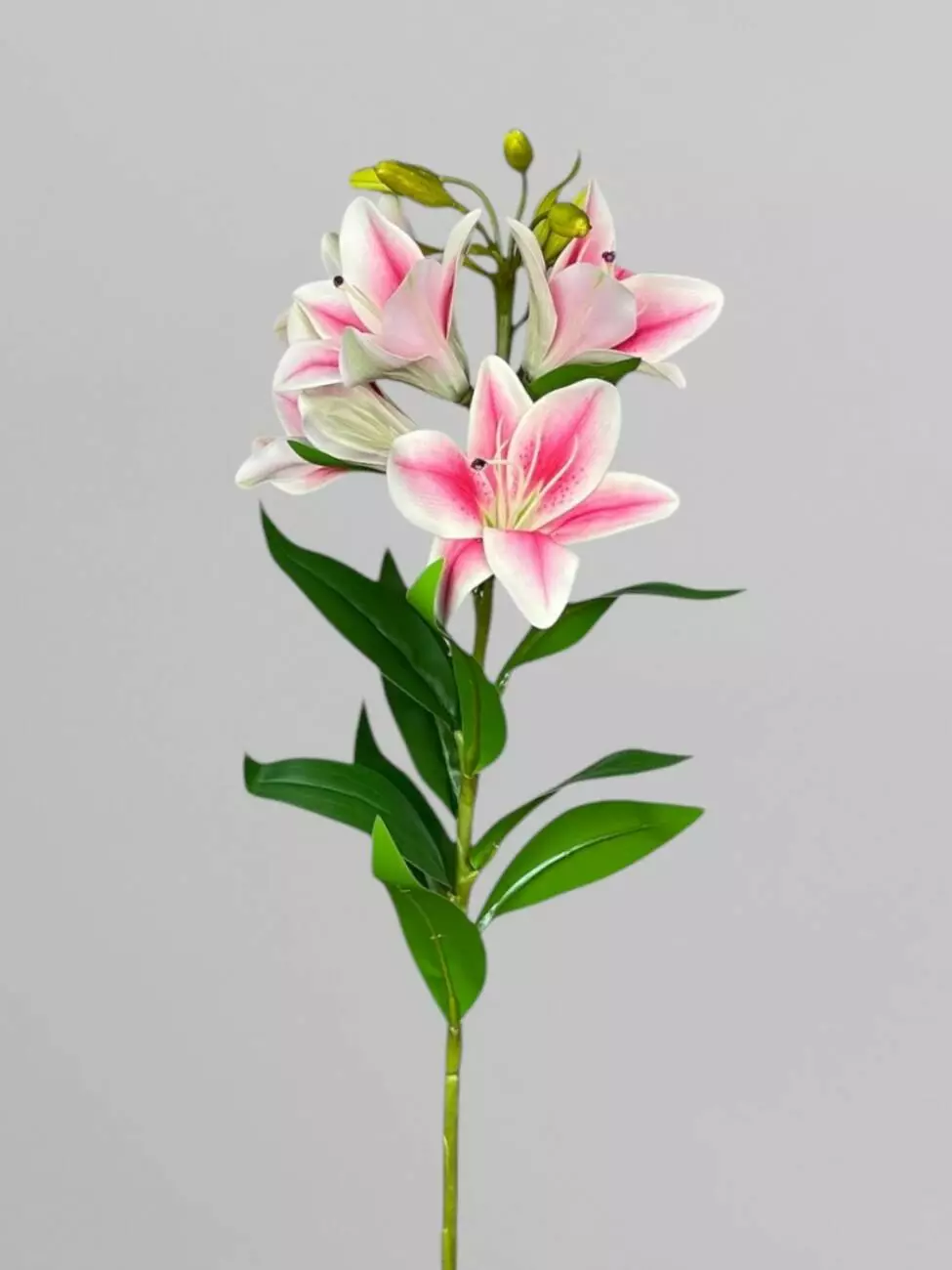 Штучна декоративна гілка лілій 5 бутонів, яскраво-рожевий, 75 см