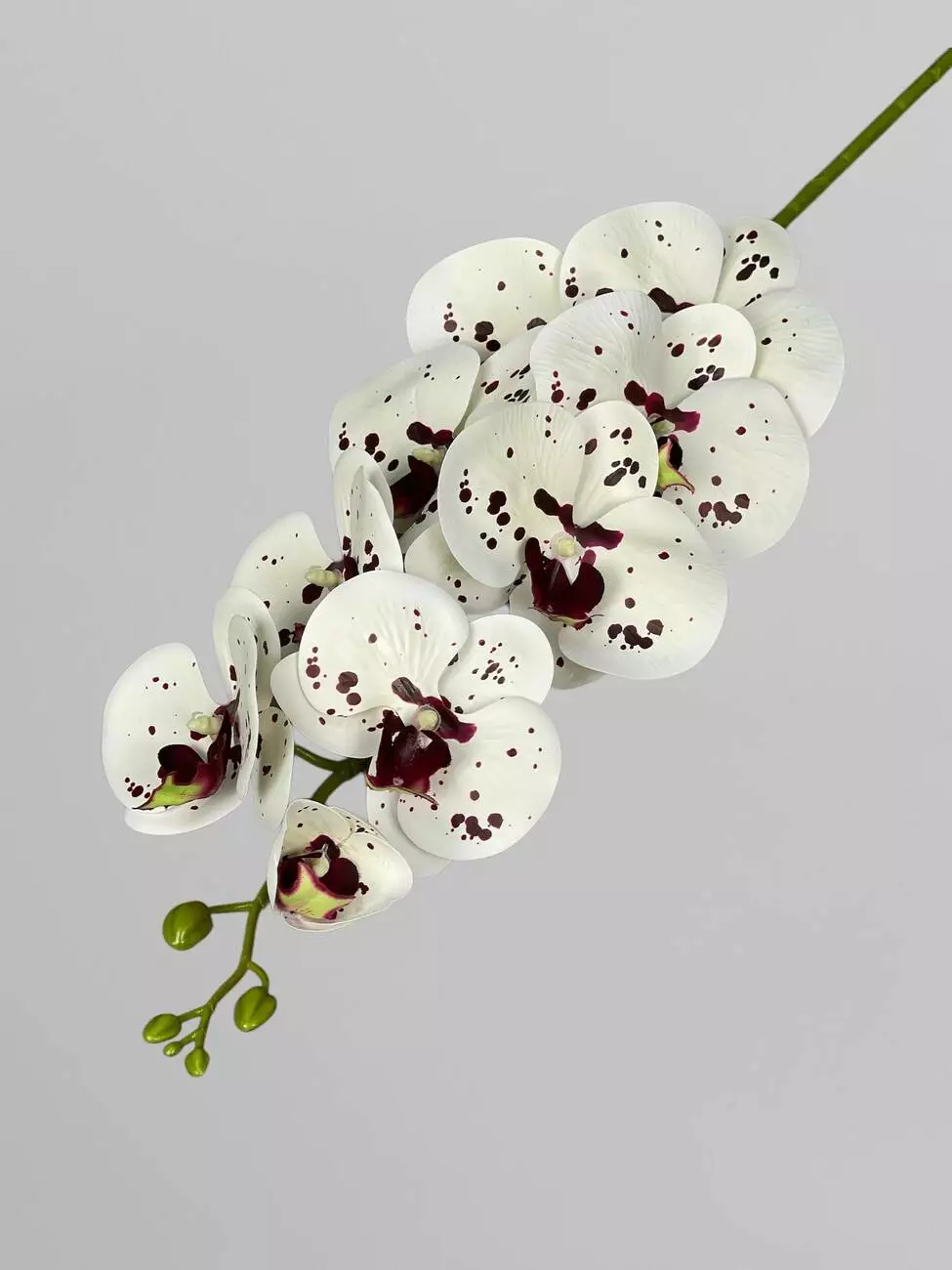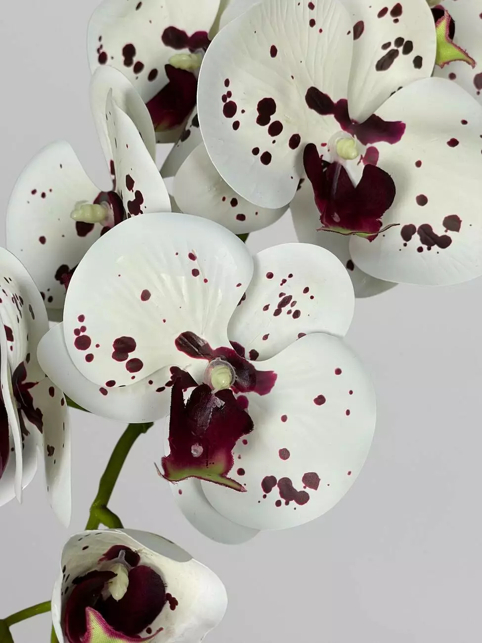 Штучна гілка орхідеї на 9 суцвіть, білий у бордову крапку, 95 см