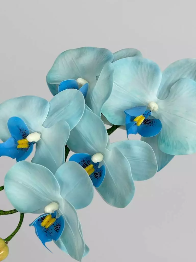 Штучна орхідея декоративна Фаленопсис 5 суцвіть, блакитний, 65 см