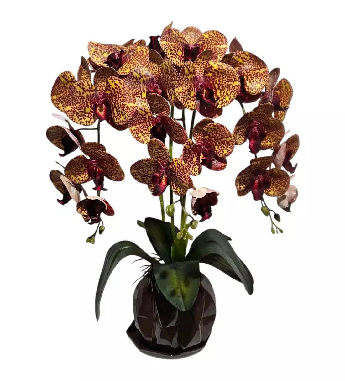Штучна орхідея потрійна насичено-жовтий у бордову крапку з латексу