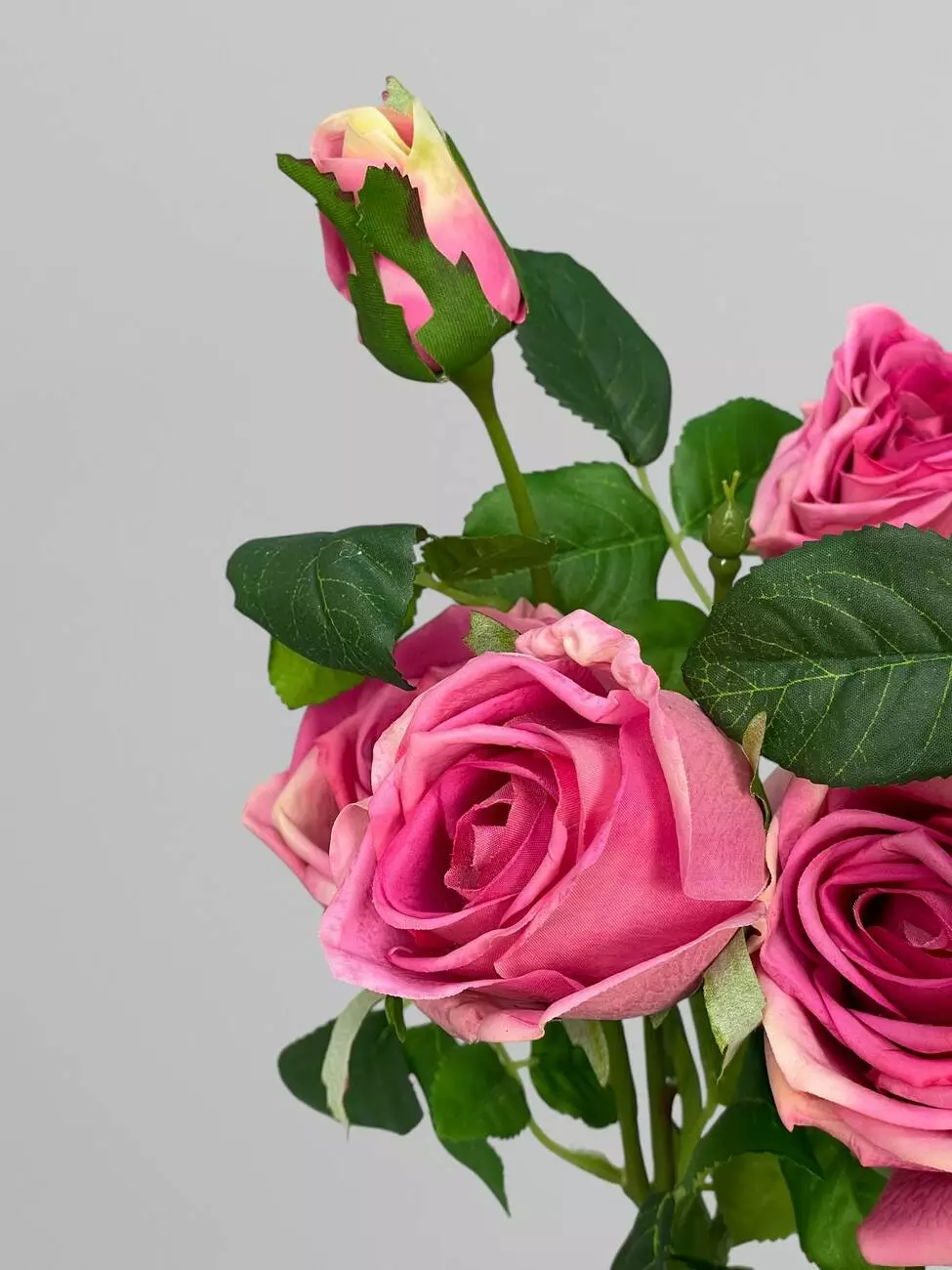 Штучна троянда на стеблі з листям, рожевий, 75 см