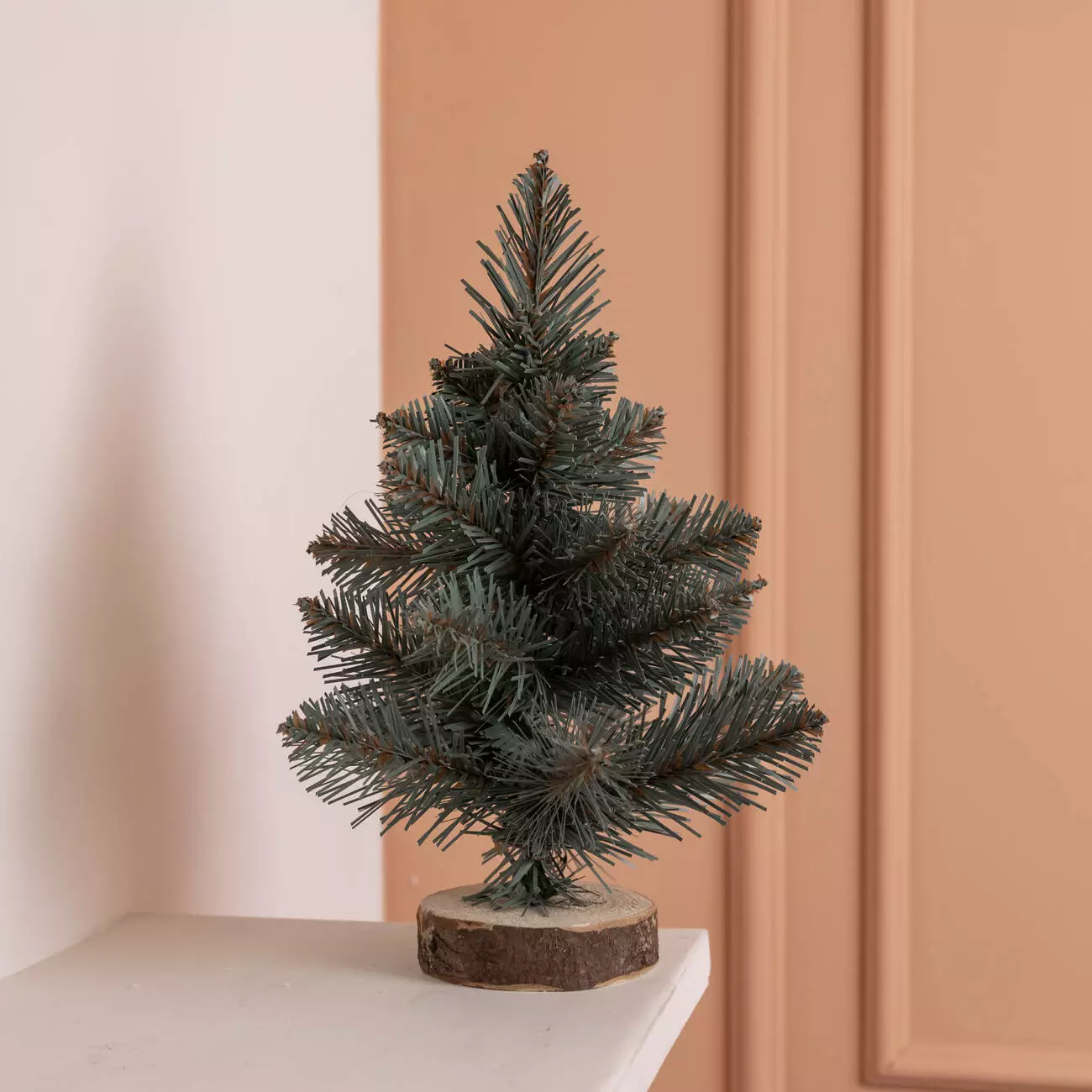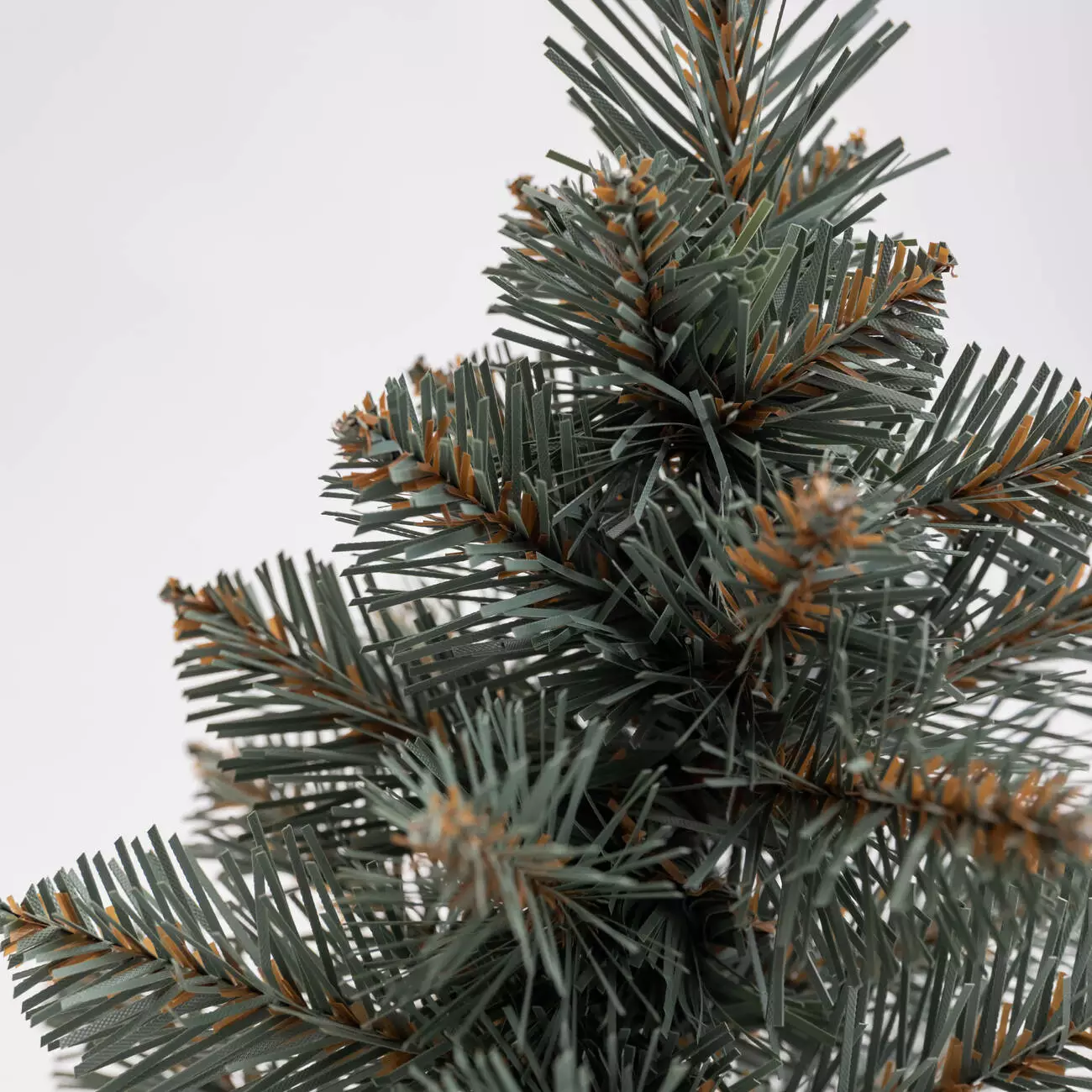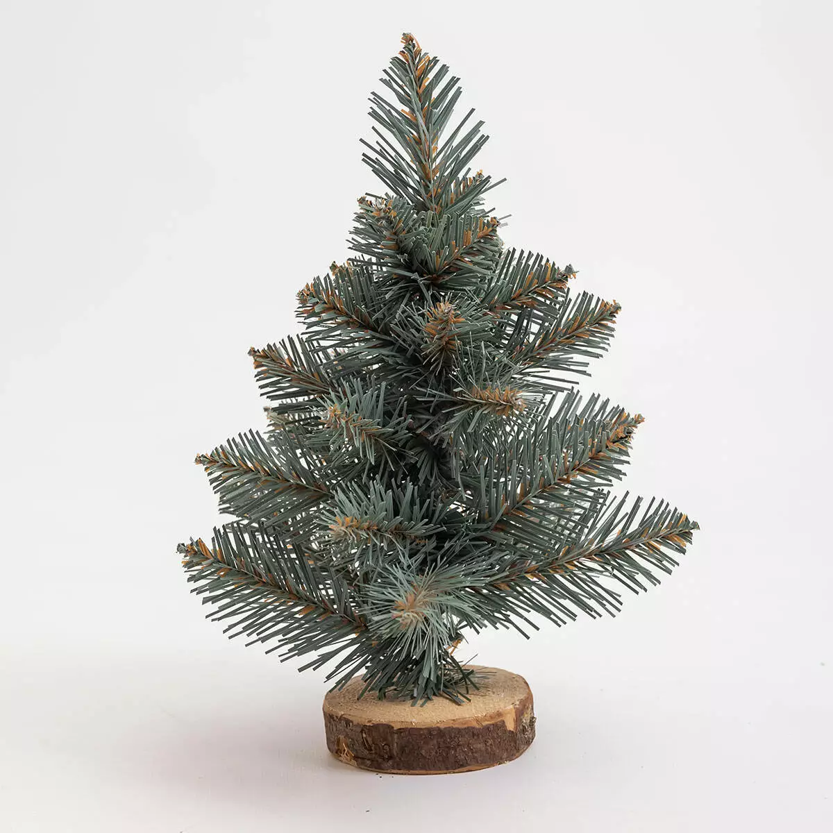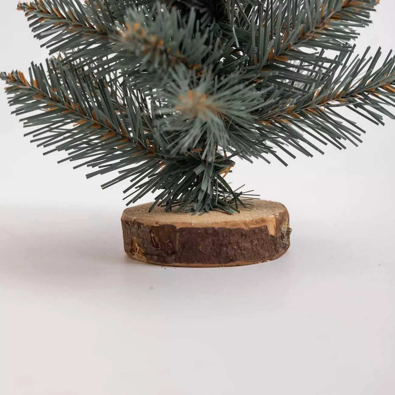Хвоя довжиною до 2,5 см рівномірно розподілена по гілках, створюючи гарну симетрію і природний вигляд. Міцний дротяний стовбур забезпечує гнучкість та стабільність, а дерев’яна основа надає виробу стійкості й естетичного вигляду. Завдяки компактним розмірам ялинка легко вписується в будь-який інтер’єр — від офісу до затишної оселі.