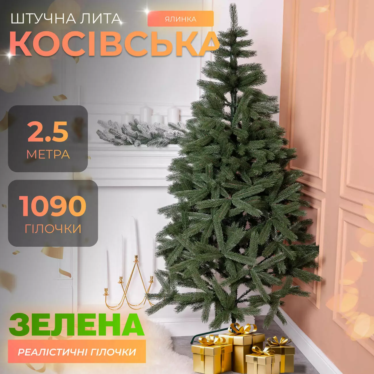 Штучна Косівська ялинка V8 висотою 2.5 метра — це розкішна новорічна прикраса, яка подарує вашому дому неповторну святкову атмосферу. Її величезна кількість гілочок (1090 штук) та 22 яруси створюють враження справжнього лісового дерева, кожна деталь якого розроблена з увагою до реалістичності та краси. Ялинка виготовлена з високоякісного поліетилену (ПЕ), що надає їй довговічності та стійкості до зношування. Така ялинка стане центральним елементом будь-якого інтер'єру, наповнюючи простір затишком і святковим настроєм.