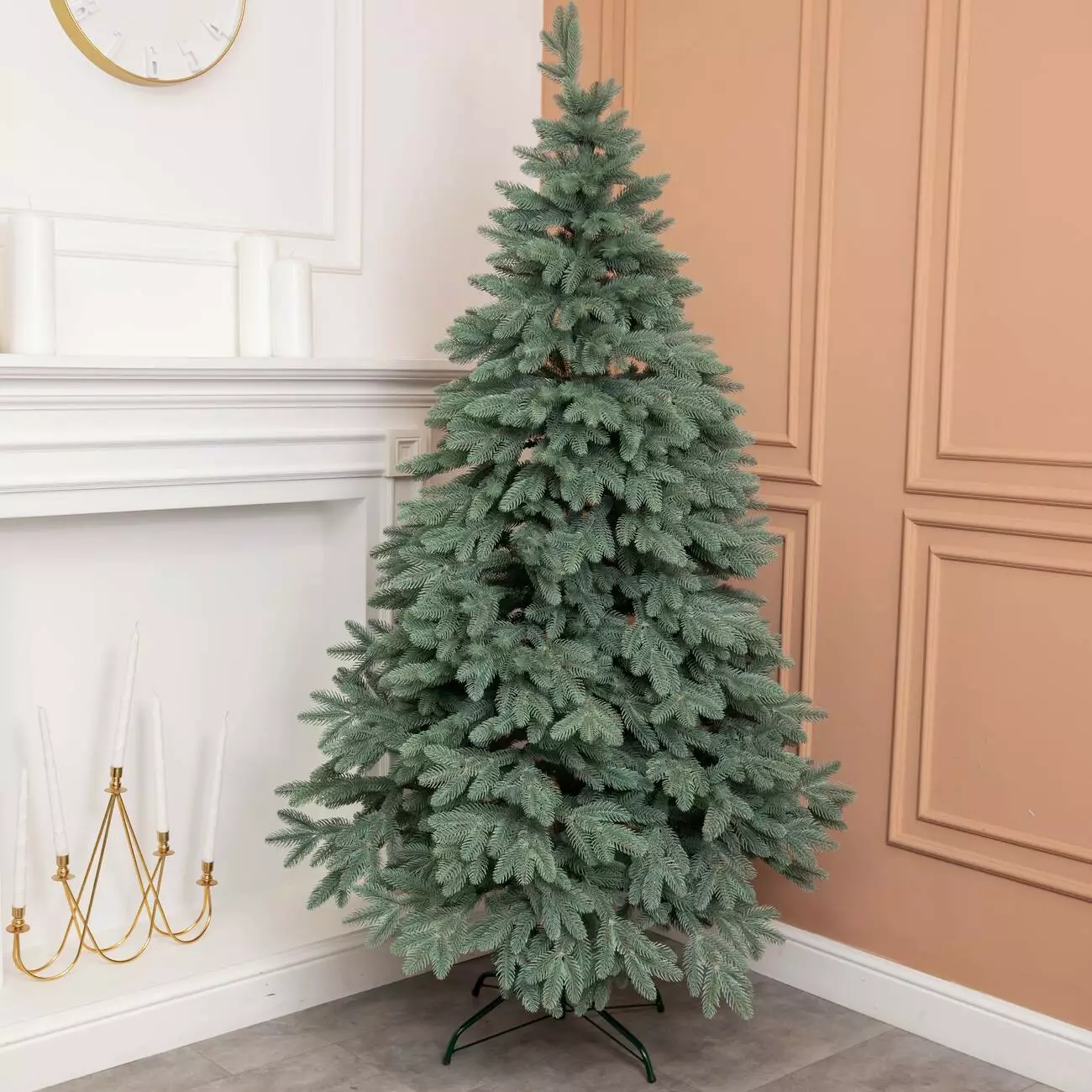 Кожна гілка дерева виробляється методом формувального лиття, завдяки чому навіть поблизу воно має приголомшливу схожість із живою розкішною блакитною ялинкою. Для виготовлення використано якісний поліетилен, стійкість конструкції забезпечує підставка з нержавіючої сталі.