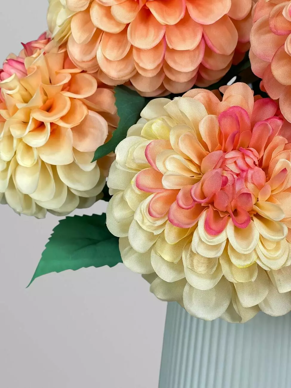 Штучна жоржина на стеблі, сатин, кремово-рожевий, 63 см
