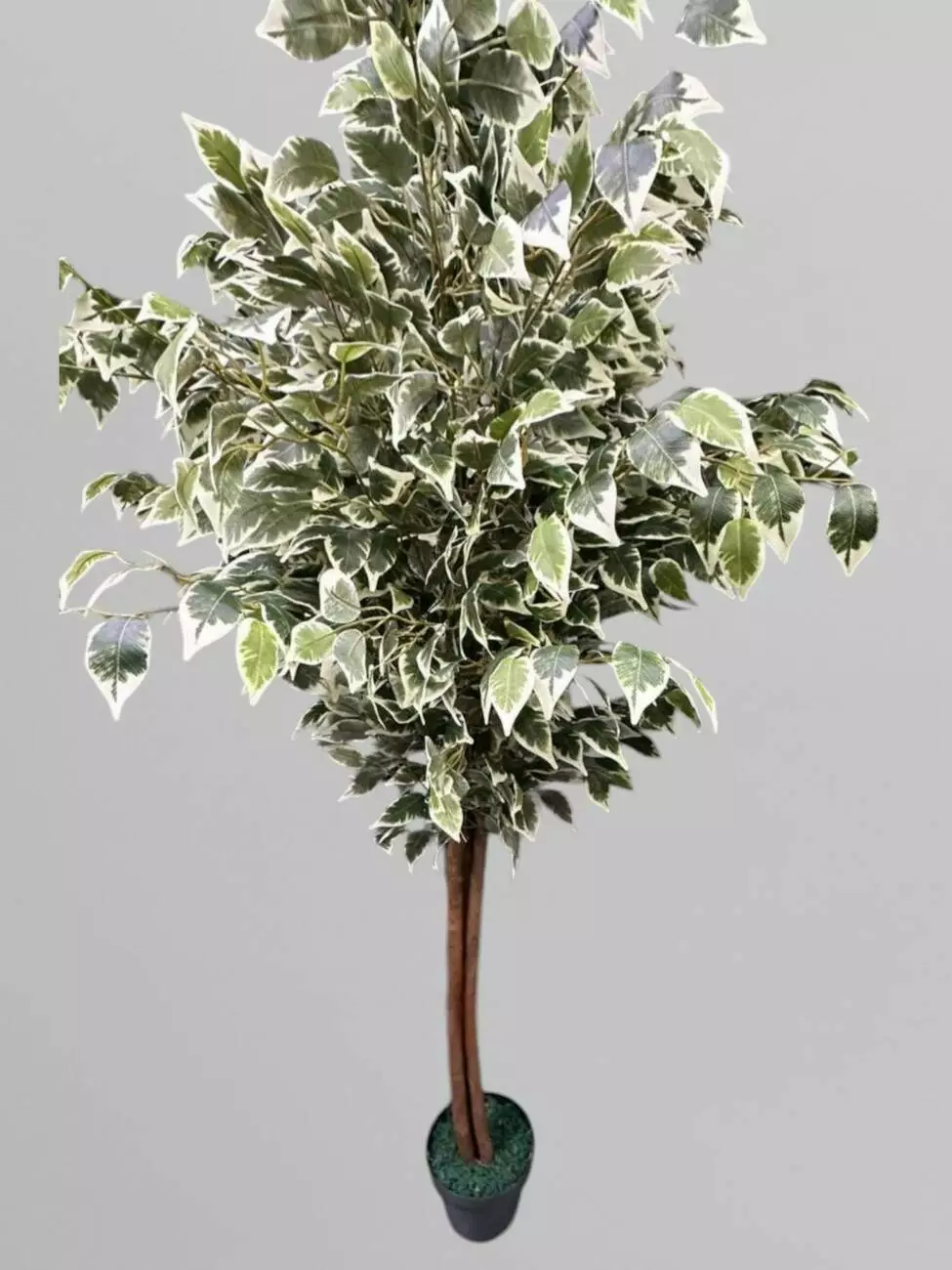 Штучний фікус Бенджаміна біло-зеленого кольору висотою 170 см — це витончений декоративний елемент, який додасть вашому простору елегантності та затишку. Він ідеально підходить для прикрашання житлових кімнат, офісів, ресторанів, готелів або будь-якого іншого приміщення, де потрібен природний акцент.
