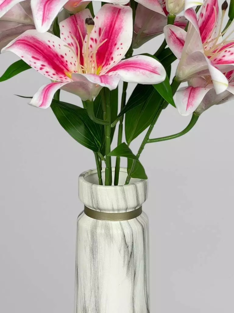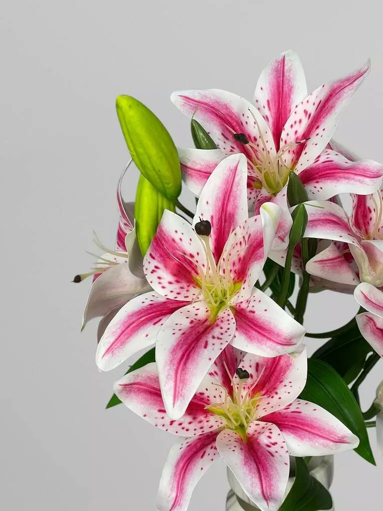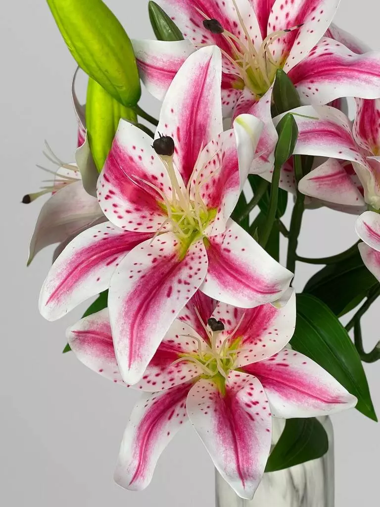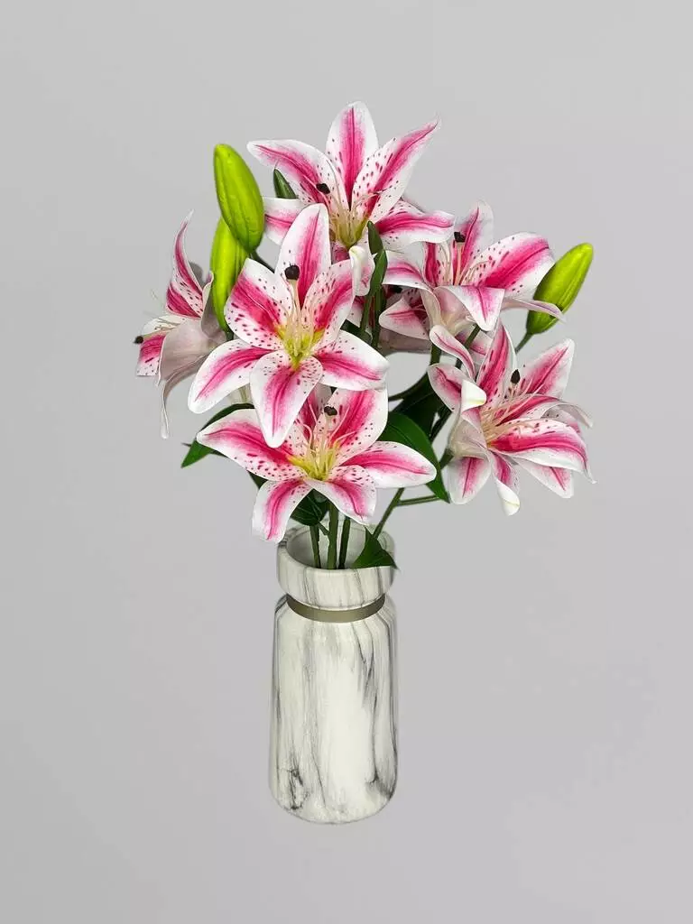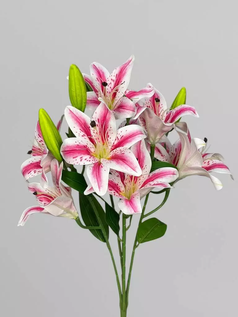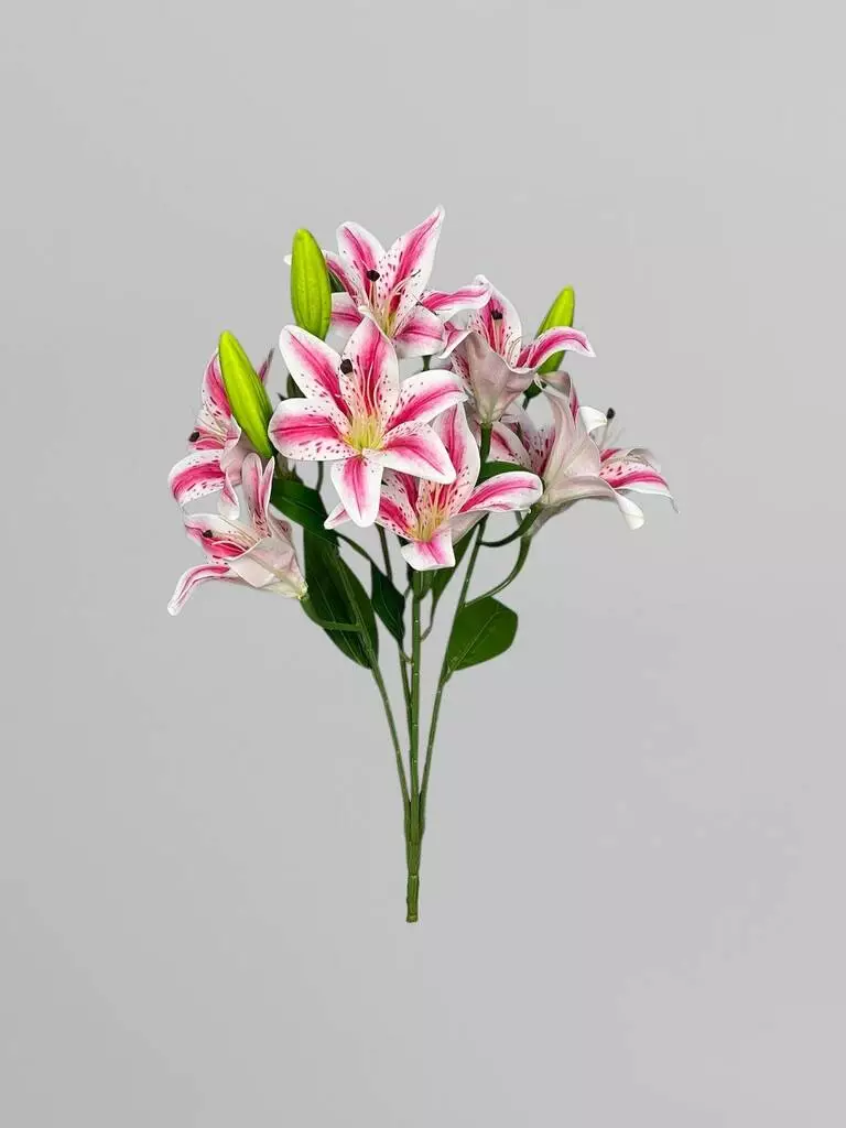 Штучний кущ з квітами лілії (9 бутонів), біло-малиновий, 53 см