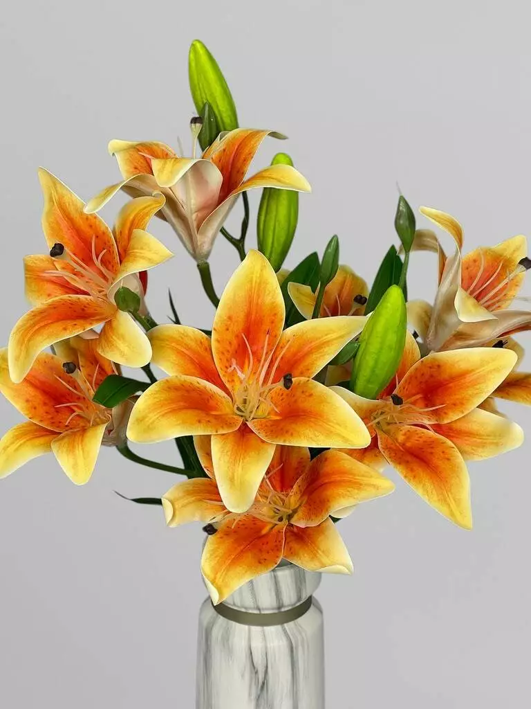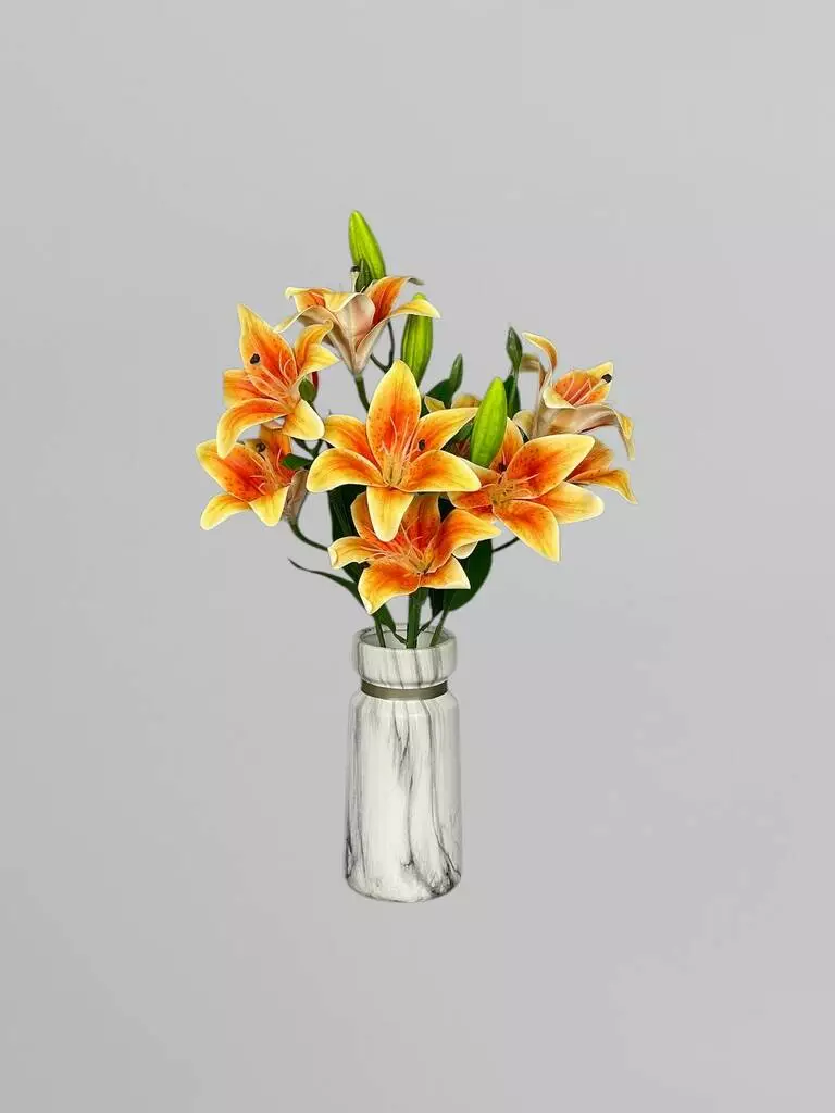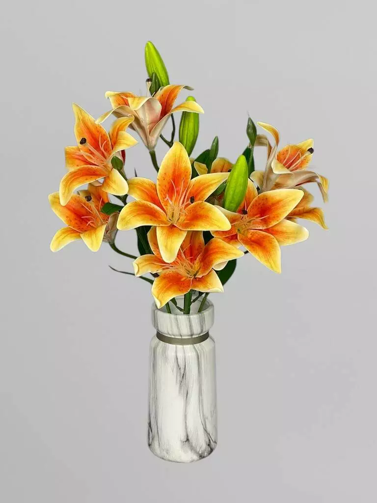 Штучний кущ з квітами лілії (9 бутонів), помаранчевий, 53 см