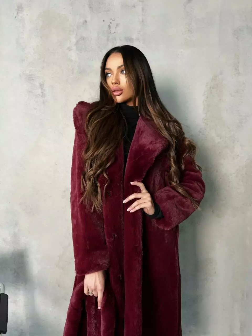 Тепла затишна шуба MIDI оснащена внутрішнім атласним підкладом і
