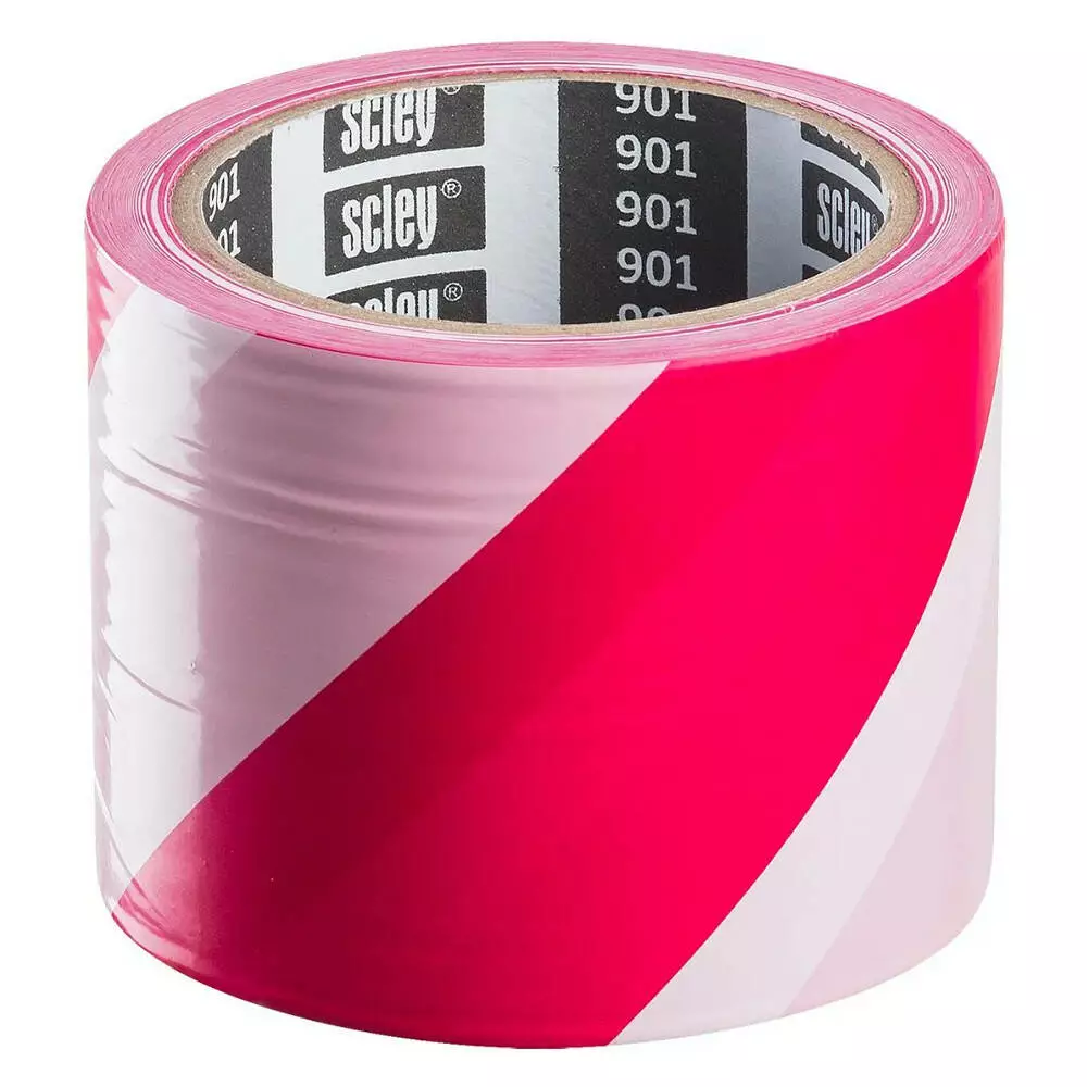 Сигнально - ограждающая лента SCLEY 80 мм x 100 м, двусторонняя, красно-белая 0370-010008 служит для защиты, обозначения и для временного ограждения опасных мест, безопасных зон, препятствий, аварийных участков дороги, территории проведения ремонтно-восстановительных работ или стройплощадки, а также различного рода зон и площадок для ограничения к ним доступа. Также применяется для обозначения границ мест проведения спортивных соревнований (велосипедных, автомобильных, лыжных трасс и т.д.) и иных зрелищных мероприятий.