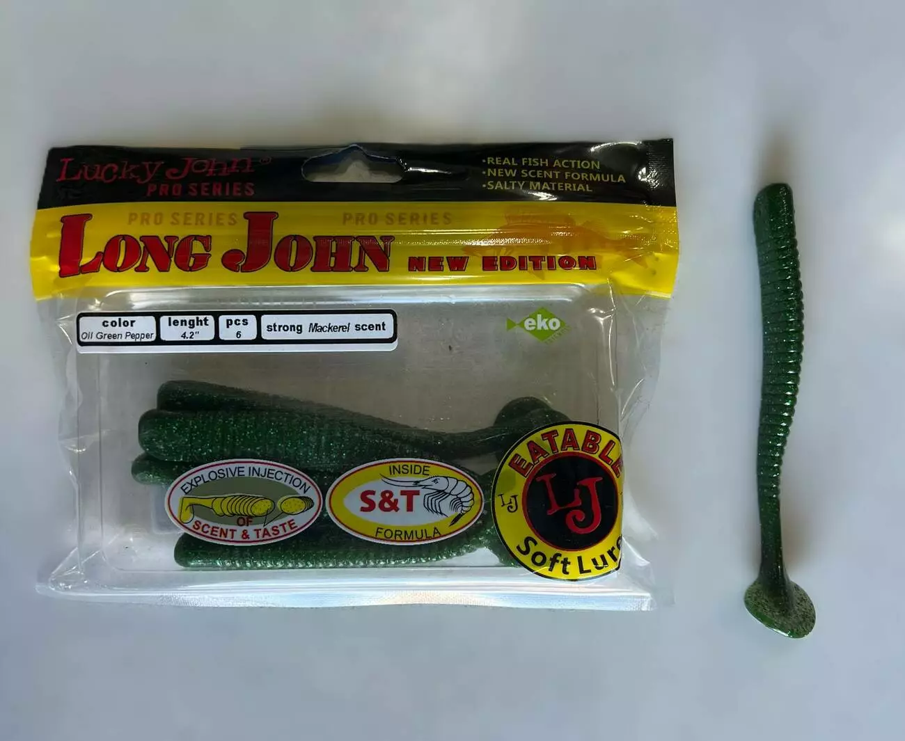 Силіконова приманка Lucky John Long John із серії Pro Series призначена для результативної ловлі хижої риби. Має подовжену форму з активним хвостом, який створює стабільну та привабливу гру навіть при повільній проводці. Виготовлена з м’якого, еластичного солоного силікону з додаванням ароматизатора, що підвищує кількість покльовок та утримує рибу довше. Добре працює на джигових монтажах, відвідному повідці та інших оснащеннях.