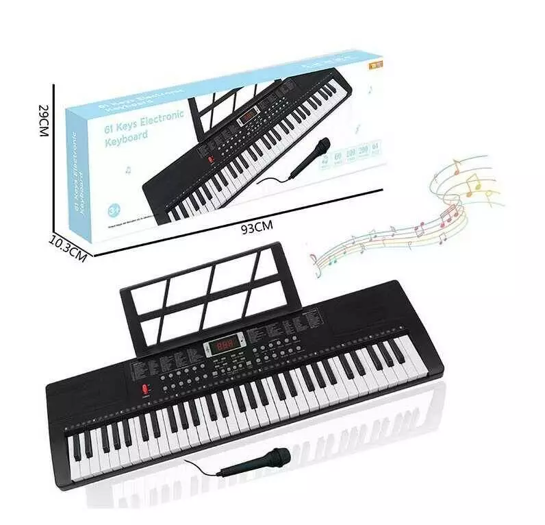 Синтезатор R 676 (6) 61 клавіша, 200 тонів, 200 ритмів, 60 демо мелодій, мікрофон, працює від мережі/батарейок, звуки інструментів, в коробці