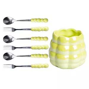Набір десертних виделок та ложок з порцеляновою підставкою, зелений