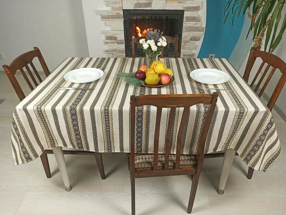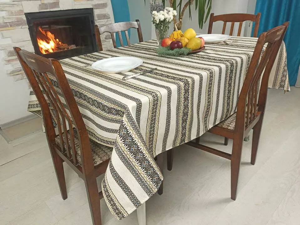 У нас большой выбор тканых вышитих скатертей с украинским орнаментом.
