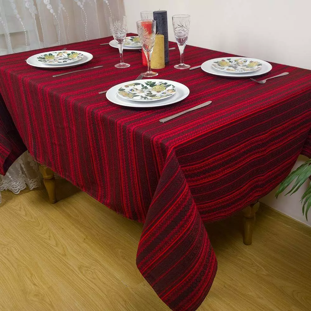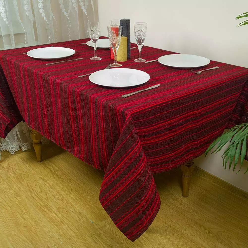 Скатертина вишита на стіл від 345 грн 180х145 см, + 6 серветок, бордова