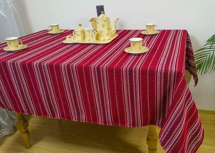 Скатертина вишита на стіл від 345 грн 34, Етнічні, 228х145 см, + 6 серветок, бордо-білий, 34