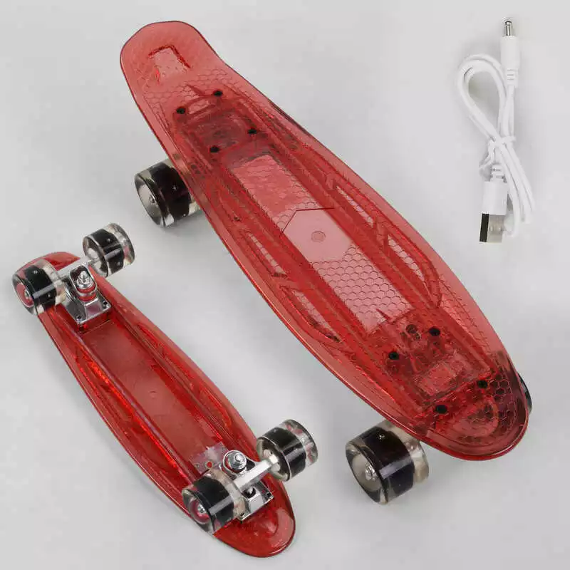 Скейт Пенни борд S-30966 Best Board (7) прозрачная дека со светом, колёса PU со светом, зарядка USB