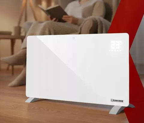 Стильний скляний обігрівач KAMINER ZELVA поєднує елегантний дизайн,