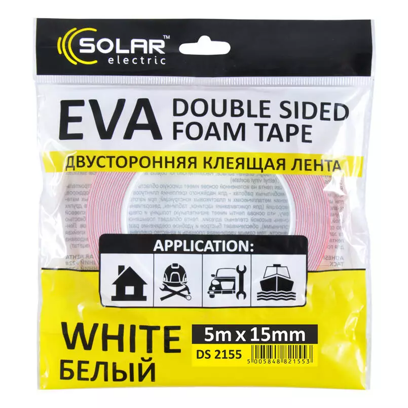 <p>Скотч двусторонний SOLAR (DS2155) белый EVA 5м x