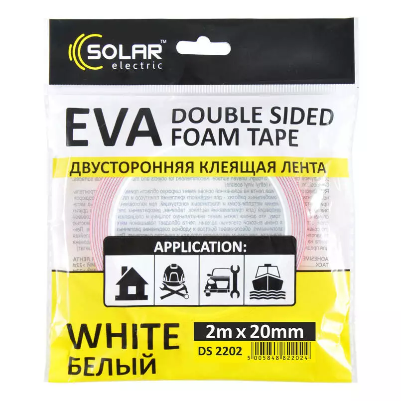 <p>Скотч двусторонний SOLAR (DS2202) белый EVA 2м x