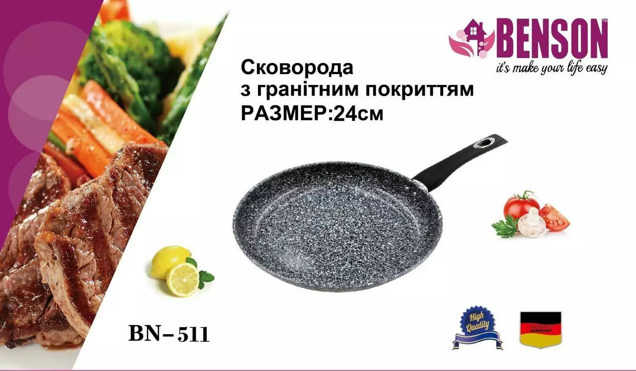 Сковорода 24 см гранітне покр. світле BN 511 (12 шт./ясть)