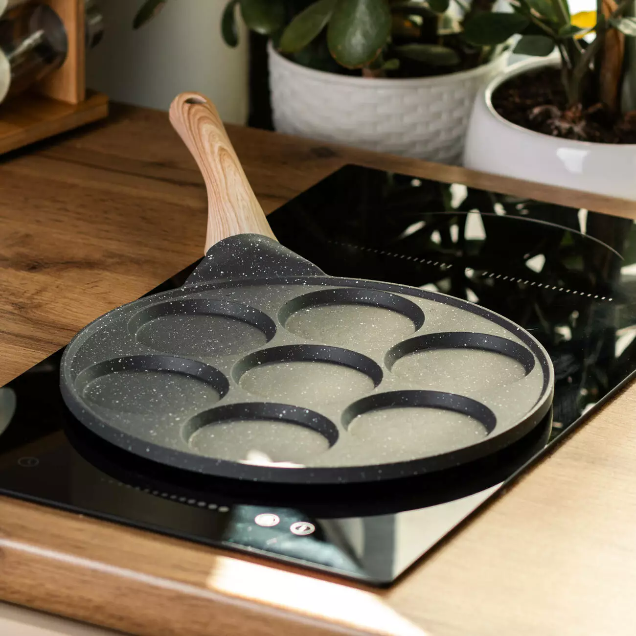 Завдяки антипригарному покриттю, панкейки не пригоряють і легко перевертаються. Для збереження цього покриття рекомендується готувати на малому або середньому вогні, використовуючи дерев'яні або силіконові лопатки. Це допоможе уникнути подряпин і зберегти антипригарні властивості сковороди на довгий час.