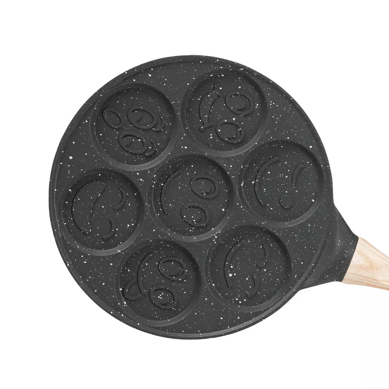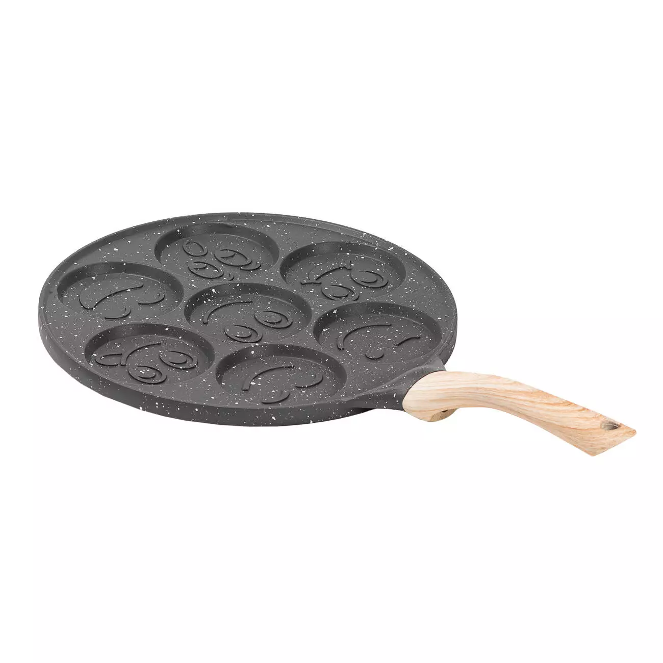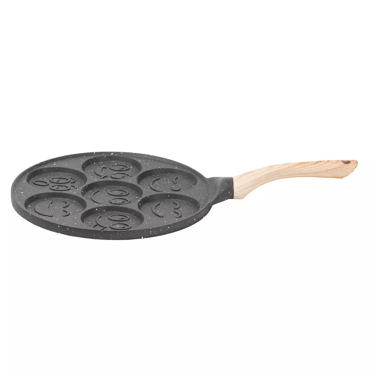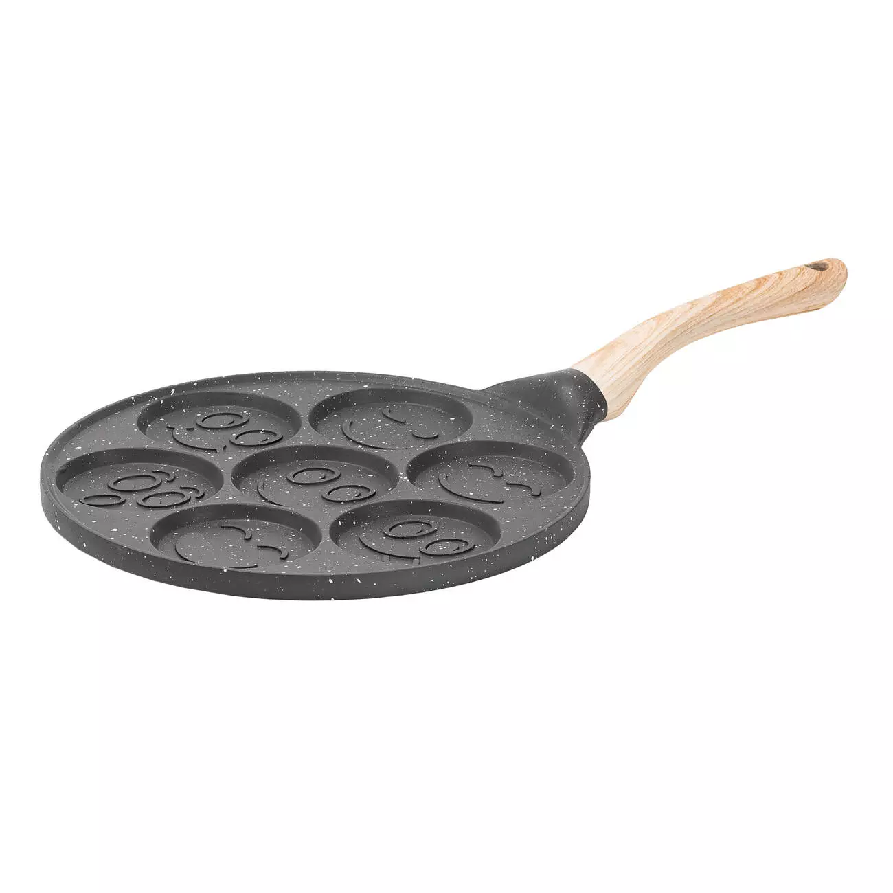 Приготування смачних панкейків стає справжнім задоволенням з цією вишуканою сковородою з антипригарним покриттям, виготовленою з високоякісного алюмінію. Її діаметр 26.5 см і товщина стінок 3 мм забезпечують відмінний розподіл тепла, що гарантує рівномірне та ефективне приготування кожної порції. Завдяки практичному дизайну, сковорода має 7 окремих секцій, кожна з яких вміщує 50 мл суміші та прикрашена милими смайлами, що робить процес приготування веселим та креативним.