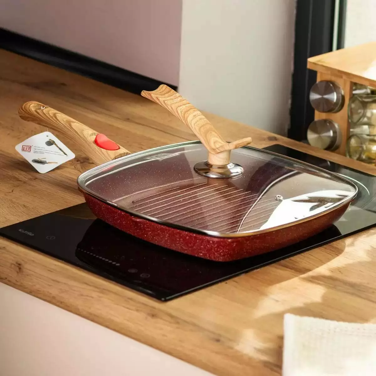 жиру або рідини, а скляна кришка з отвором для виходу пари