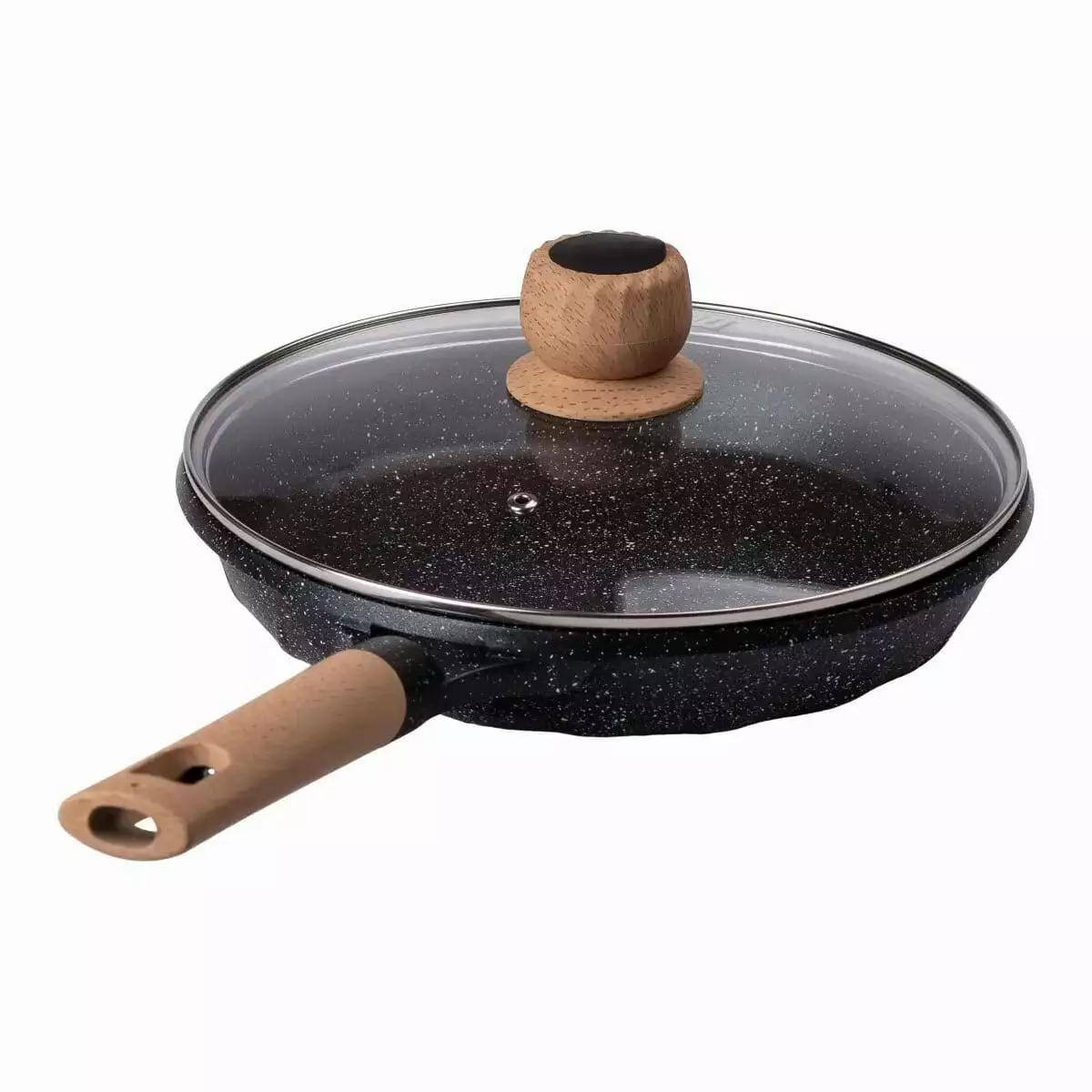 Сковорода з антипригарним мармуровим покриттям та кришкою 26 см, чорний