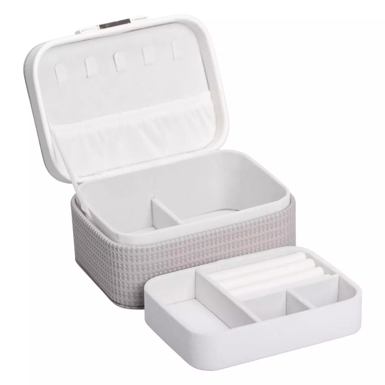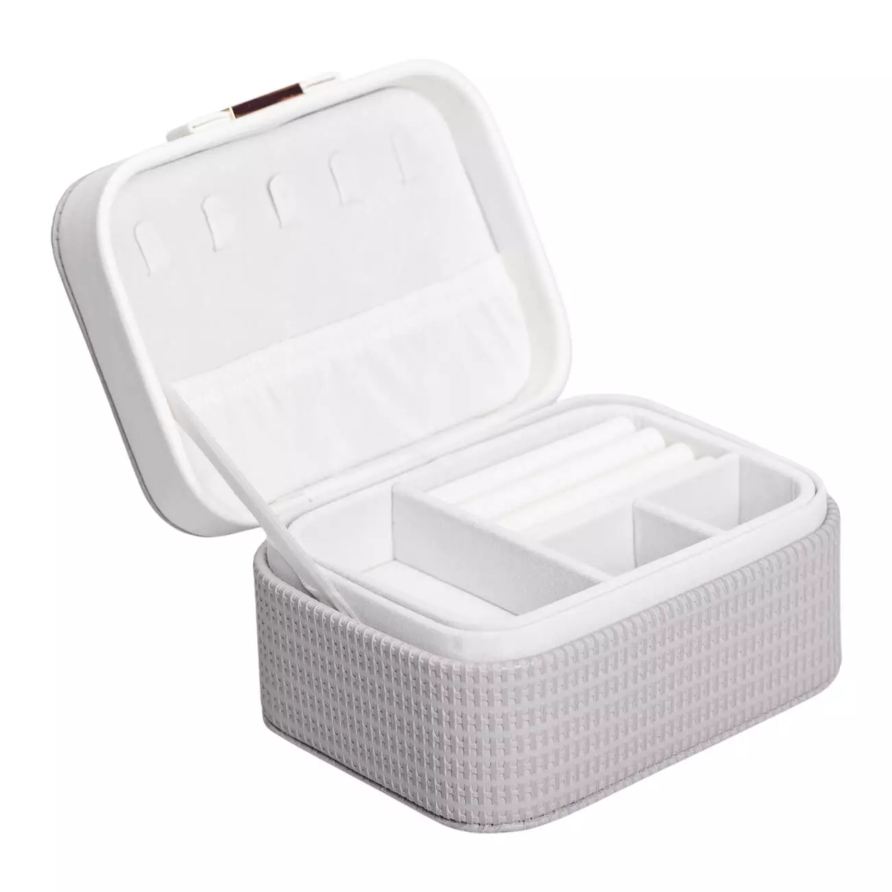 Скринька-органайзер для прикрас розміром 15,5 х11,5х8,5 см - компактне рішення для зберігання різноманітних аксесуарів. Скринька має 8 відсіків, завдяки чому можна зручно розмістити кільця, браслети, сережки, ланцюжки. Внутрішнє оздоблення виконане з велюру і відмінно підходить для перлів, каміння, дорогоцінних металів та біжутерії.
