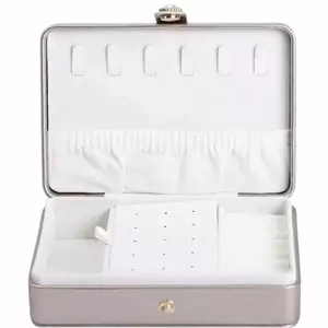 Скринька-органайзер для прикрас розміром 16х11х4,7 см - компактне та стильне рішення для зберігання різноманітних аксесуарів. Скринька має 8 відсіків, завдяки чому можна зручно розмістити каблучки, сережки, ланцюжки. Також передбачена окрема планшетка для пусетів та кафф, що дає можливість ефективно організувати парні та штучні сережки. Внутрішнє оздоблення виконане з велюру і відмінно підходить для перлів, каміння, дорогоцінних металів та біжутерії.