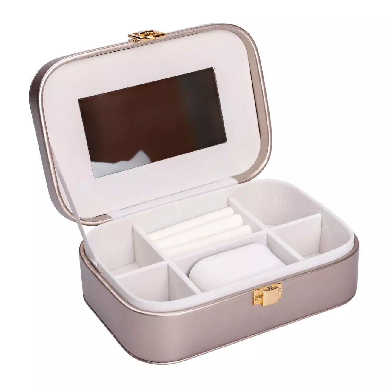 Органайзер доповнений дзеркалом у кришці, що робить його використання ще зручнішим. Скринька щільно закривається, є накидний замок, що запобігає випадковому відкриванню.