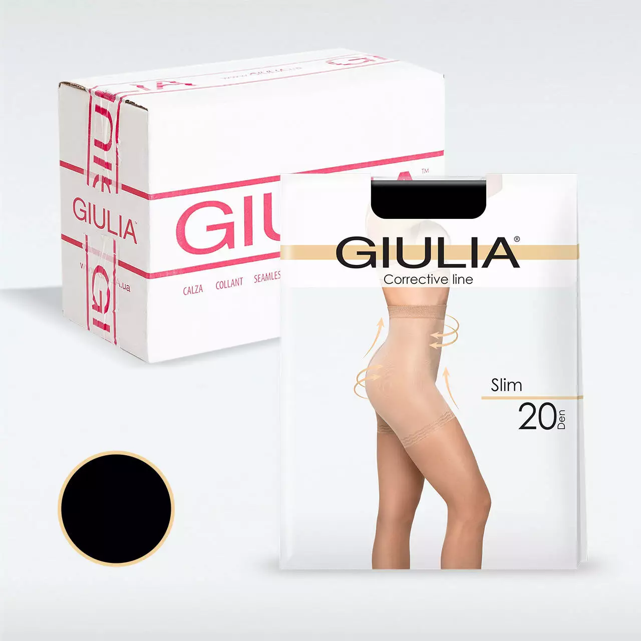 Тонкі жіночі колготки з коригуючими шортиками Giulia SLIM 20 відрізняються змішаною щільністю: основна частина колготок має 20 den, а високі підтягуючі шортики - 150 den. Це забезпечує відмінне підтягування і моделювання фігури в області стегон, сідниць, талії, живота і боків. Модель має гладку, матову і еластичну поверхню. Шортики оснащені міцною, м'якою і широкою еластичною резинкою вгорі, що забезпечує комфортне і надійне фіксування. Також присутні комфортні плоскі шви і бавовняна ластовиця для додаткового комфорту і гігієни.
