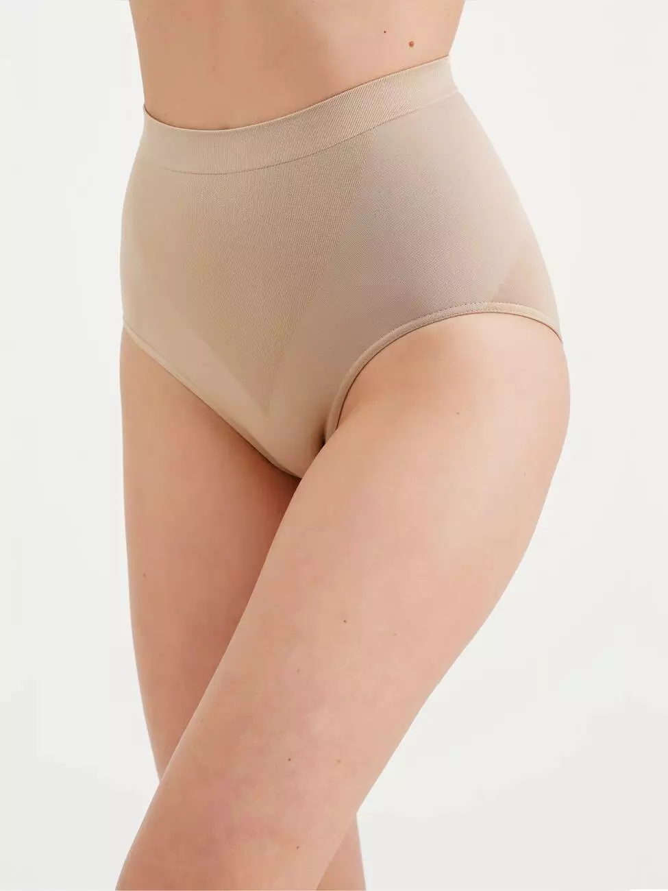 Жіночі коригуючі трусики з високою посадкою забезпечують комфорт і делікатне моделювання силуету. М’яка мікрофібра приємна до тіла та підходить для щоденного носіння. Ущільнені зони створюють легкий компресійний ефект у ділянці живота, стегон і сідниць, формуючи більш підтягнутий вигляд. Безшовна технологія гарантує непомітність під одягом.