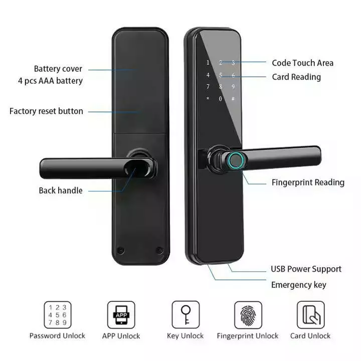 Способи відкриття: відбиток пальця, пароль, карта, ключ, додаток