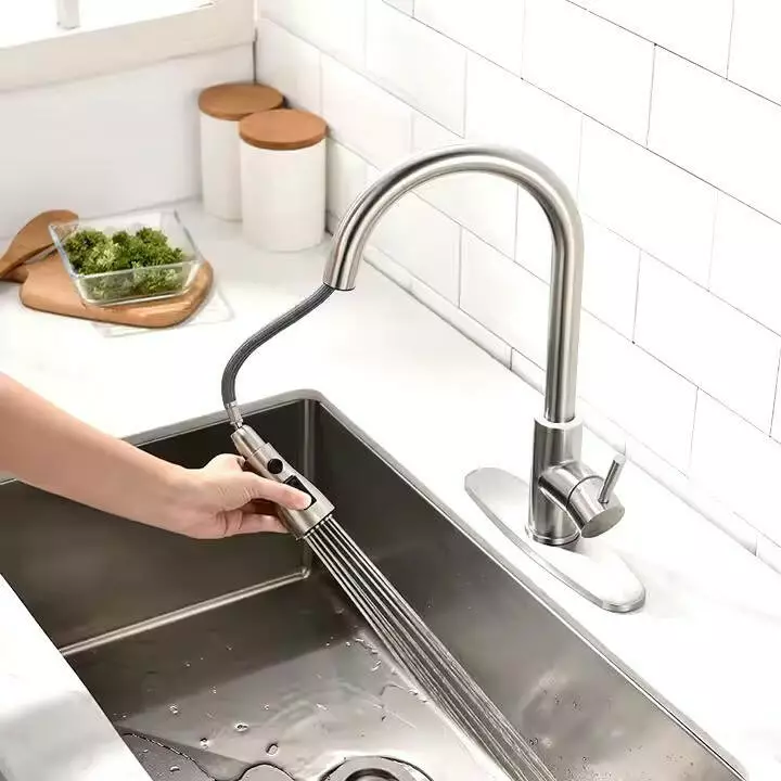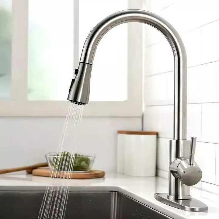 Этот стильный смеситель для кухни с корпусом из латуни и гибким